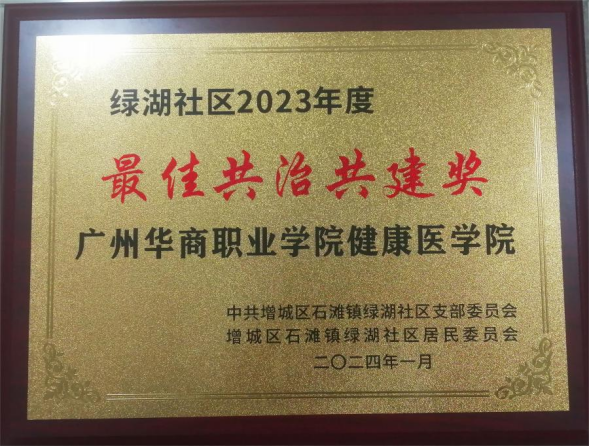 石滩镇绿湖社区党支部和居委会授予我院“绿湖社区2023年度最佳共治共建奖”