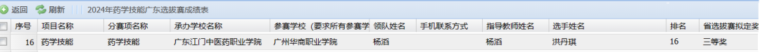 2024年1月19日至21日,由广东省教育厅主办,江门中医药职业学院承办的“2023-2024年度广东省职业院校专业技能大赛药学技能赛项”在江门中医药职业学院顺利举办。全省28所院校共28支队伍参赛。经过为期三天的激烈角逐,健康医学院药学专业学生洪丹琪荣获省级三等奖。