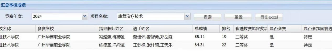 本次参赛队伍由钟柳熙老师担任领队,冯滢瀛老师和练德圣老师为指导老师,康复治疗技术专业蔡佳怀、曾智勇、郑岳庭、王梦桐、王天乐、张杜预六名学生为参赛人员。