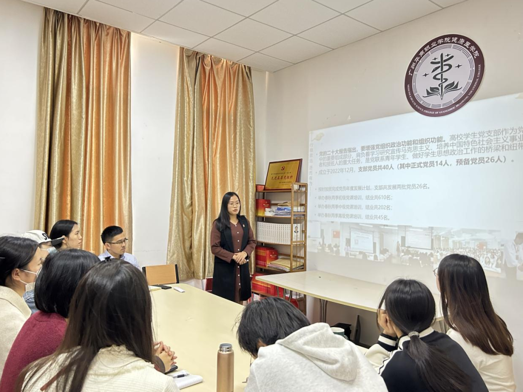 学生第二党支部书记赵巧鸿同志在述职报告中指出学生第二支部积极开展学习贯彻习近平新时代中国特色社会主义思想主题教育,协助组织学习活动41余场;坚持挖掘具有专业特色的活动,组织党员结合自身专业特长服务、孝敬家人,如为家人制作药膳食物一同品鉴或开展刮痧、针灸推拿等活动;与广州医科大学附属第四医院门诊医技第一党支部进行党建结对红联共建活动,积极推动党员志愿服务活动。