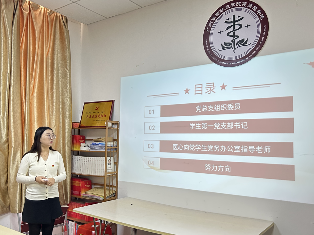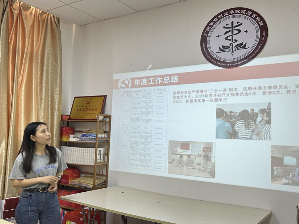 学生第一党支部书记何泓同志在述职中提到学生第一党支部在党员志愿服务队的基础上,组建了医心健康服务队,并与增城区馨颐社会工作服务中心党支部(荔湖街社工站)和广医四院行政后勤第一党支部签订“红联共建”协议,将党建工作与专业教育深度融合,搭建健康教育与社会服务新载体。支部荣获了“先进基层党组织”和““学习强国”学习平台使用先进单位”荣誉称号,被评选为“党建工作样本党支部”创建单位。支部将建立党务办公室和服务队工作手册,规范学生工作流程,制定党员加分表,提高党员自治性和主动性。