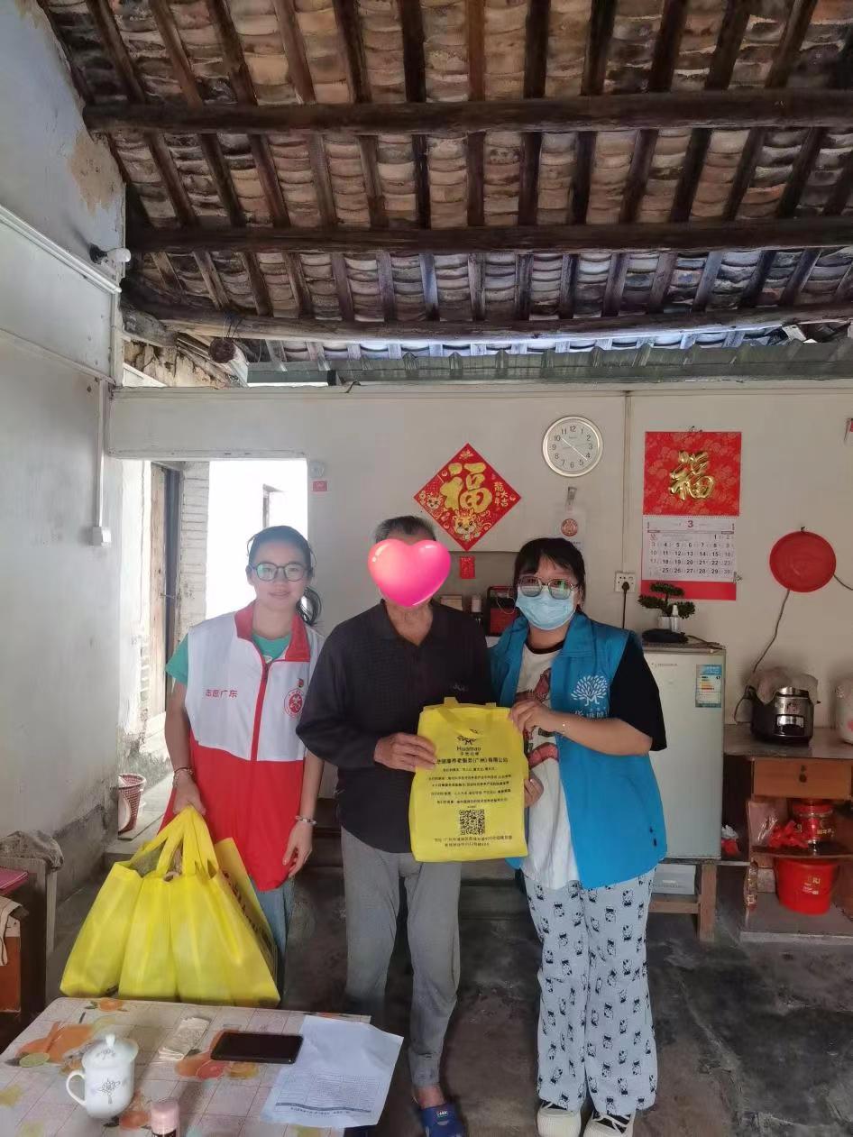 一袋袋蔬菜承载着队员们满满的温暖与爱心。抵达三联村后,队员们迅速分组,挨家挨户走访长者家庭。