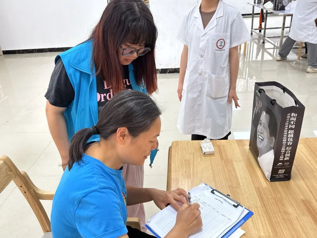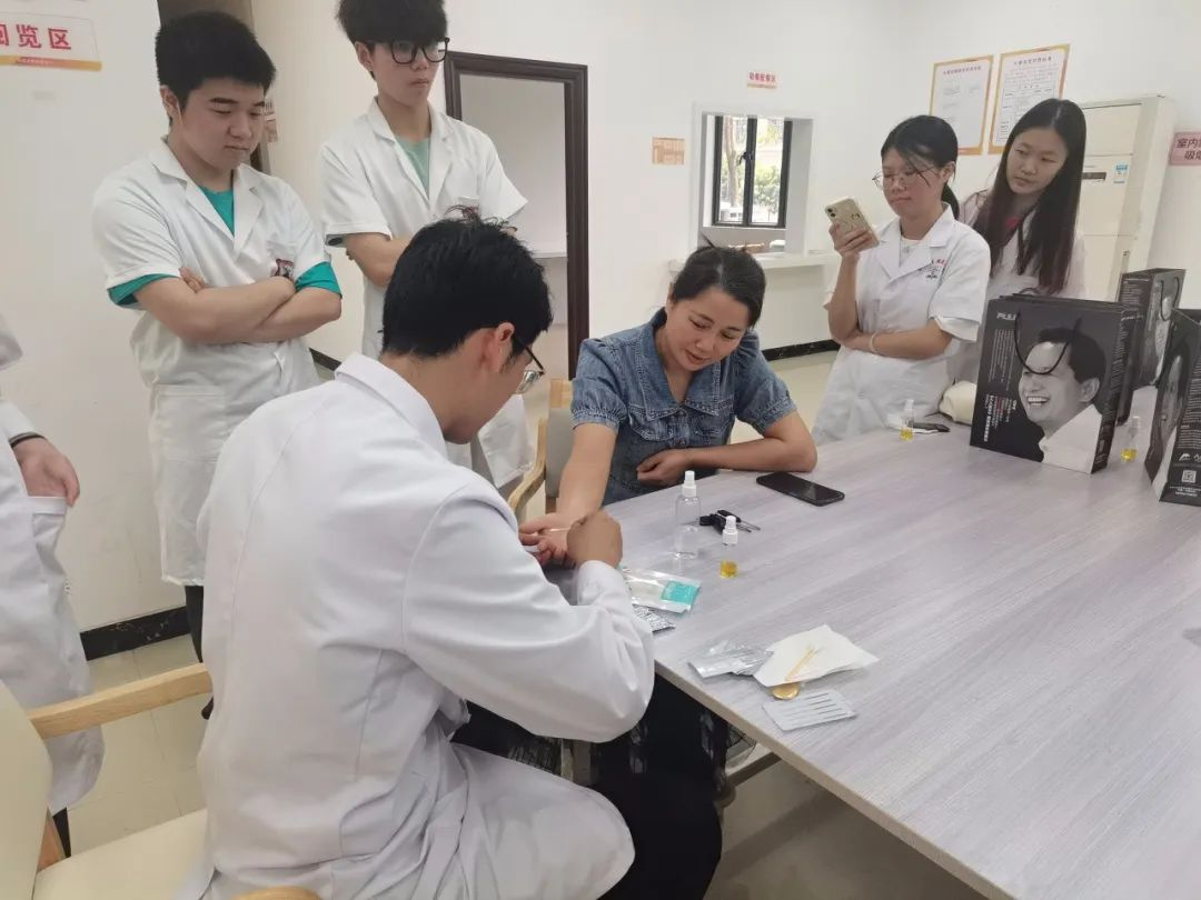 义诊活动中,工作人员组织前来咨询的长者签到,我院师生志愿者现场为群众进行刮痧、拍痧、针灸等理疗服务。志愿者们轻声细语的对长者们表示关怀,通过聊天,了解叔叔阿姨们的具体情况,便于更好地为他们提供精准的诊断和理疗服务。活动现场,志愿者认真聆听长者的疑问,耐心细致地为他们答疑解惑,并提出日常保养方法。