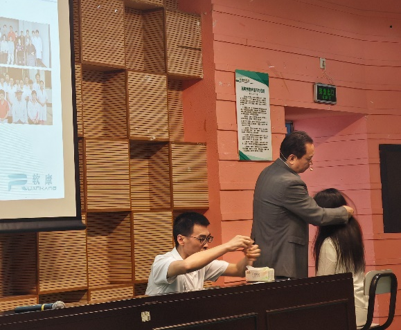 4月13日下午及次日,大会安排了软组织康复特色技术培训,重点围绕肩颈腰背痛刮痧技术展开。培训过程中,专家们不仅传授了寻找压痛点、掌握刮痧技巧等核心知识,还现场展示了针灸技术的精妙之处。