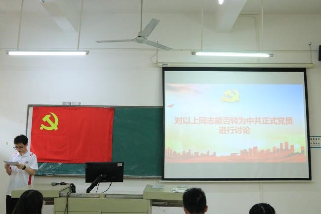 拥有表决权的党员对郑俊坚等9名同志是否按期转为中共正式党员进行充分讨论。