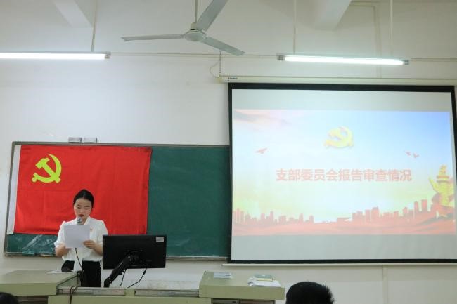 学生第一党支部组织委员杨敏娟向大会报告支委会对郑俊坚等9名同志的审查情况。