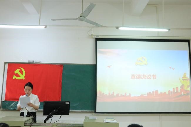 本次大会发出选票7张,实际收回7张,实际有效票数7张。在场正式党员无记名投票一致通过郑俊坚等9位中共预备党员如期转为中共正式党员,由学生第一党支部组织委员杨敏娟向大会宣读决议书。