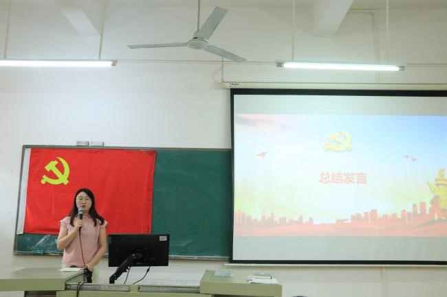 学生第一党支部书记何泓同志为此次大会作总结发言。她谈到,作为中国共产党员,最基本的就是坚定政治立场不动摇,思想不能腐化,坚持爱党爱国,要持续提升自己、服务他人,牢记自己的党员身份,严格要求自己,密切跟党组织保持联络,自觉接受群众的监督,并且常怀感恩之心。