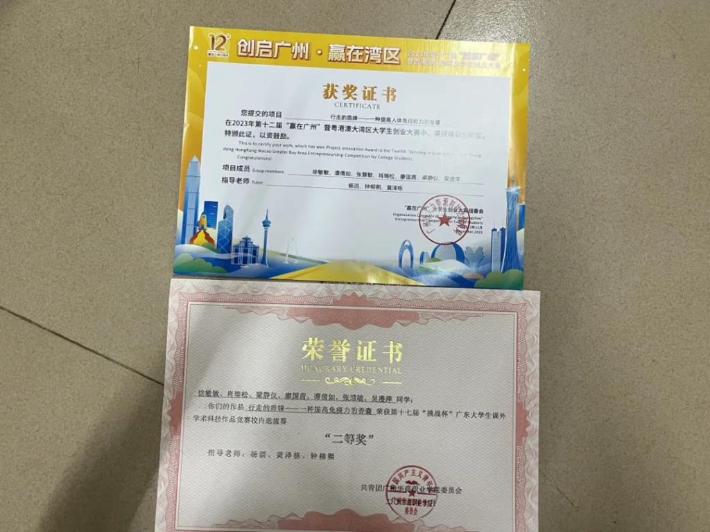 徐敏敏、谭倩如、张慧敏、肖瑞松、廖国茜、梁静仪同学在“2023年第十二届赢在广州”暨粤港澳大湾区大学生创业大赛”以及“广州华商职业学院第十七届挑战杯校内竞选”获得“创新奖”和“二等奖”。