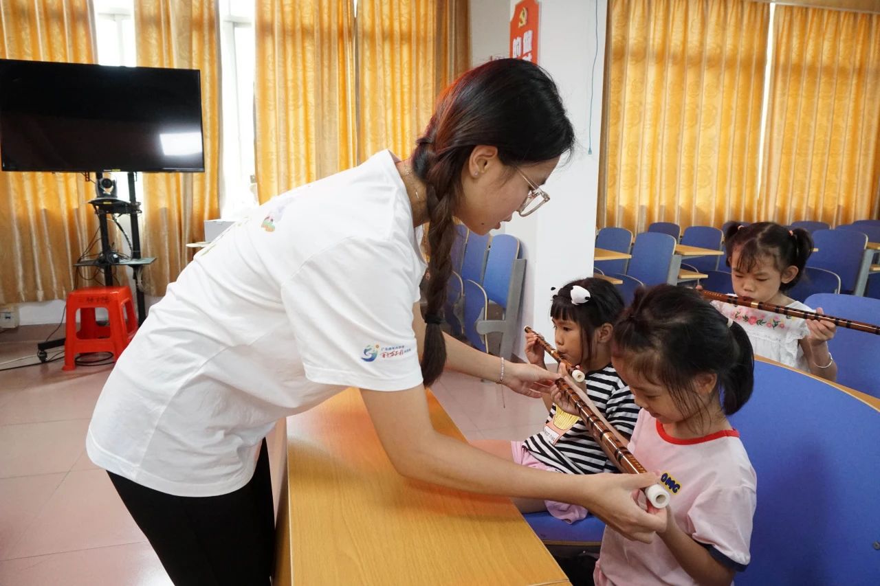 在荔湖街文化站,中国舞公益关爱营课间实践队队员设计抛接球游戏环节,寓教于乐,在上课之余通过游戏增强团队凝聚力,营造积极欢乐的学习氛围;在三联村队员们积极引导青少年参与竹笛公益爱心活动,耐心解答疑惑,队员们敏锐地捕捉每位学员的情绪变化,用鼓励的话语和温柔的引导,帮助他们跨越心理的障碍,重拾自信与勇气。在音乐的海洋中,青少年们找到了表达自我、释放情感的渠道,心灵得到了真正的疗愈与成长。