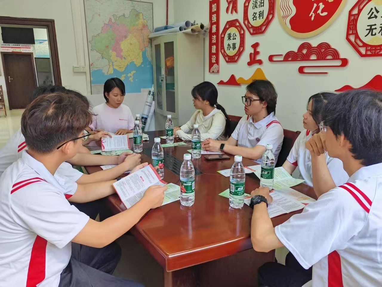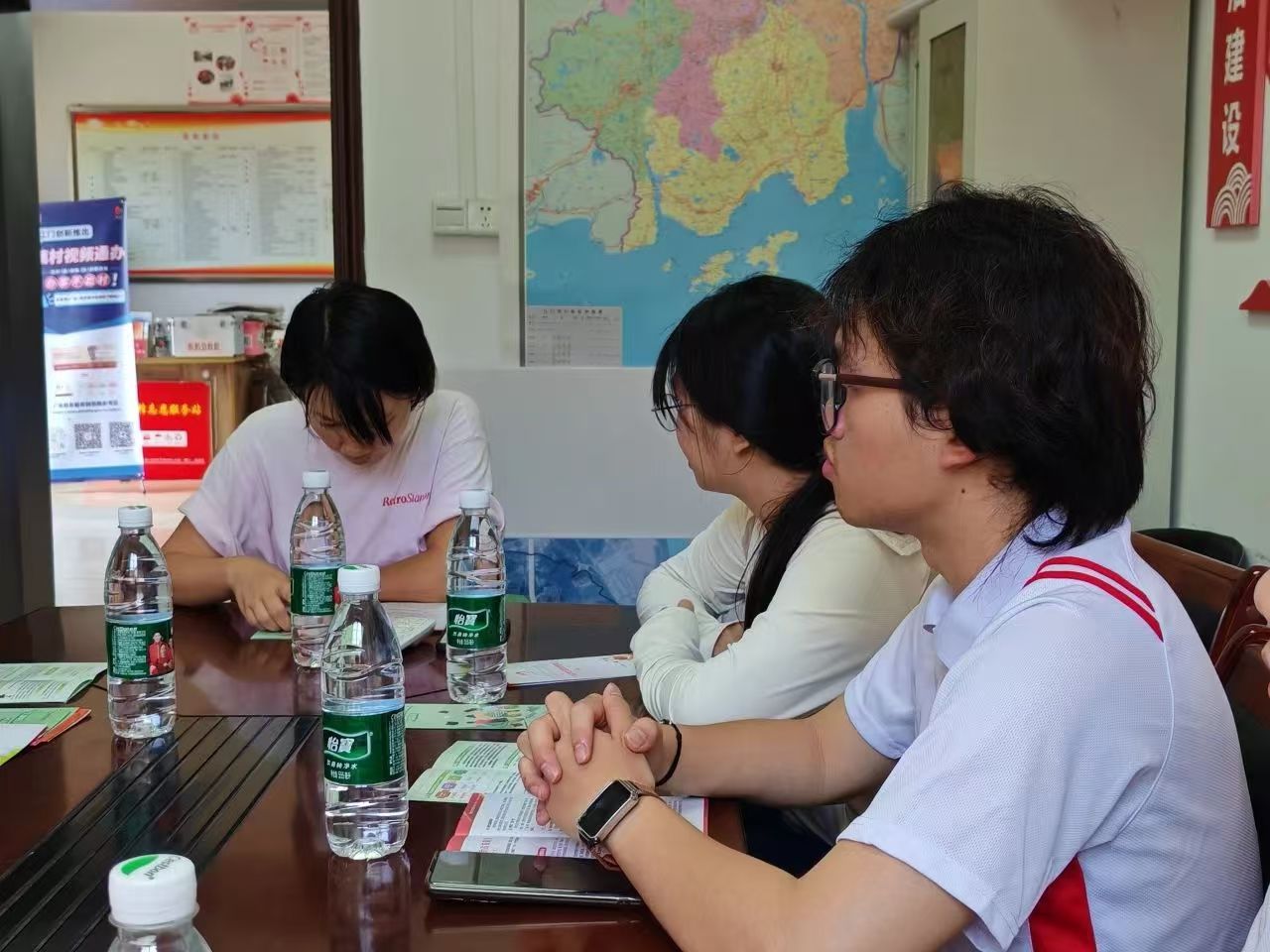 “希望之翼”宣传小分队向村委会工作人员了解行政村的具体情况,包括村里的在读人数、在读阶段以及家庭情况等,以加深对村里教育环境的认识,为后续开展国家资助和助学贷款政策宣传与宣讲奠定了坚实的基础。
