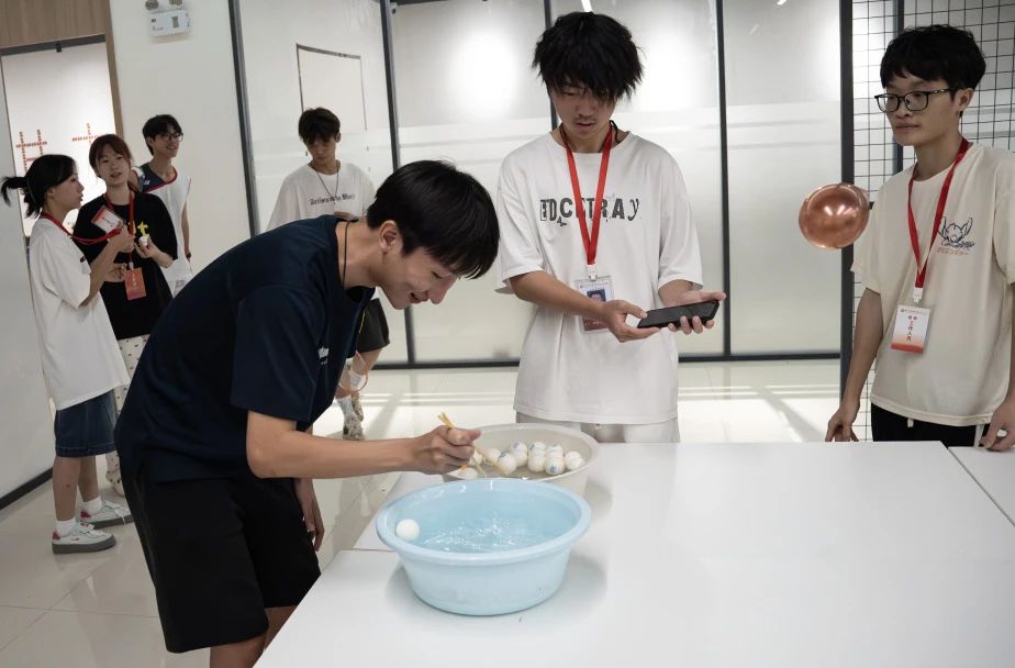 本草一隅饮吧举行了水中乒乓游戏,用筷子将水盆中的乒乓球夹到另一个盆里。老师和同学们开启了稳和快的较量,师生同台竞技,欢乐满溢。一时间,水盆旁欢声笑语不断,每个人都沉浸在这份纯真的快乐中。水花飞溅,欢声笑语,这场游戏不仅增进了师生之间的感情,还让我们在忙碌的生活中找到了一丝乐趣。