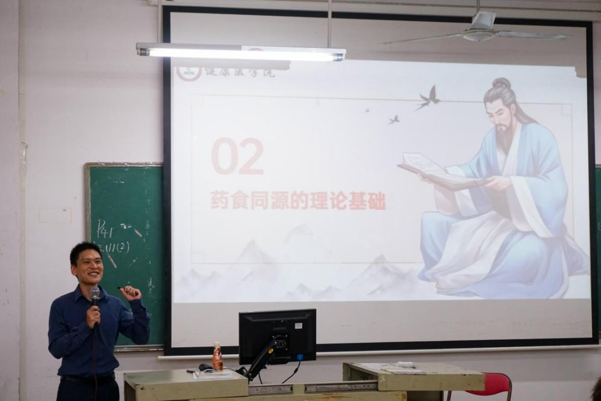 为了普及中医药知识,提高学生们的健康素养,倡导科学养生理念。健康医学院于2024年9月25日开展以“药食同源”为主题的科普讲座。主讲嘉宾是学院药学专业负责人杨滔老师从事中医药研究与实践多年,对药食同源理论有深入的研究。