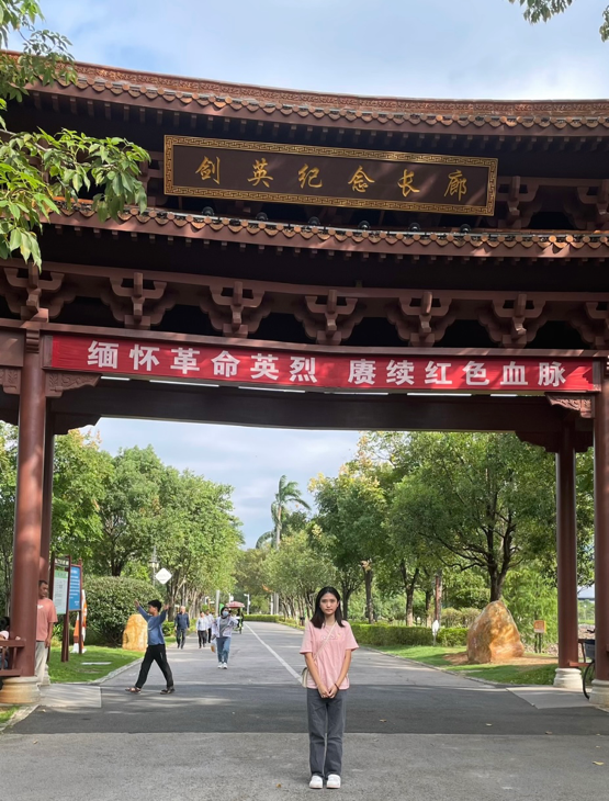 国庆期间,肖瑞松同志前往梅州市剑英纪念长廊和梅州市革命历史纪念馆。走入正门,映入眼帘的便是叶剑英元帅的巍峨石雕像,这个雕像不仅是叶剑英元帅英勇事迹的象征,更是他崇高精神与不朽功勋的永恒铭记。肖瑞松同志认为,作为新时代的青年,我们肩负着传承和发扬革命先辈的红色精神的重任,必须时刻铭记他们的英勇事迹和无私奉献精神,加强理论学习,提高政治素养,注重实践锻炼,增强党性修养,传承红色精神,弘扬爱国主义,用实际行动去践行“全心全意为人民服务”的宗旨。