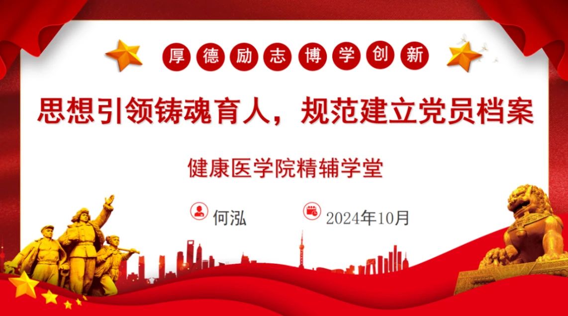 为进一步做好发展党员工作,提升辅导员专项工作能力素质,认真落实党员发展程序。2024年10月11日,“精辅学堂”(第一期)第五讲《思想引领铸魂育人,规范建立党员档案》在献章书院报告厅举行,培训由健康医学院学生第一党支部书记何泓主讲,学院(江门校区)全体辅导员参加培训。