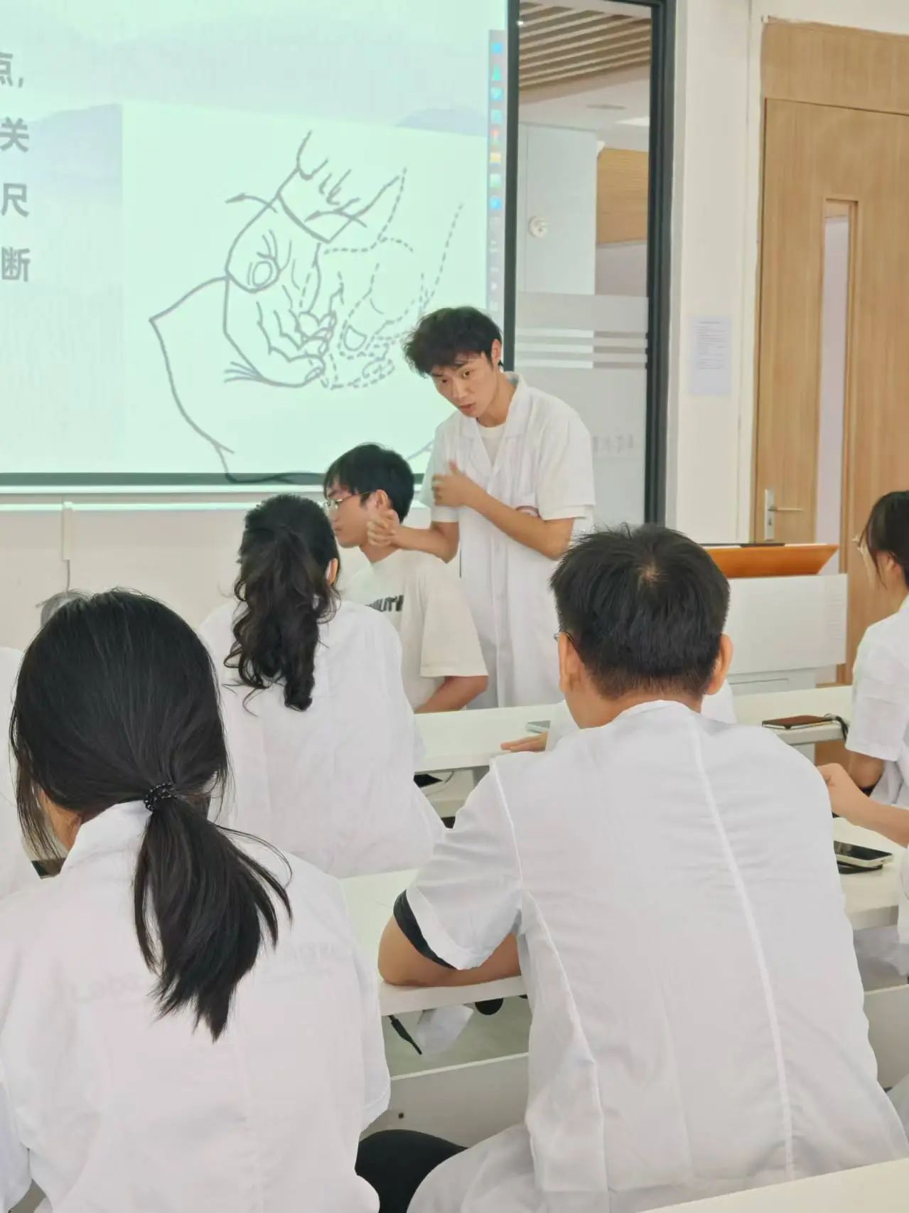 培训中,许梓淳部长还重点讲解了常用的推拿手法,从定义到操作再到作用、应用,以及相关的注意事项,每一项都为队员们仔细讲解,同时还邀请学员们上台体验推拿手法。接着,学员们积极动手实操,相互交流学习。