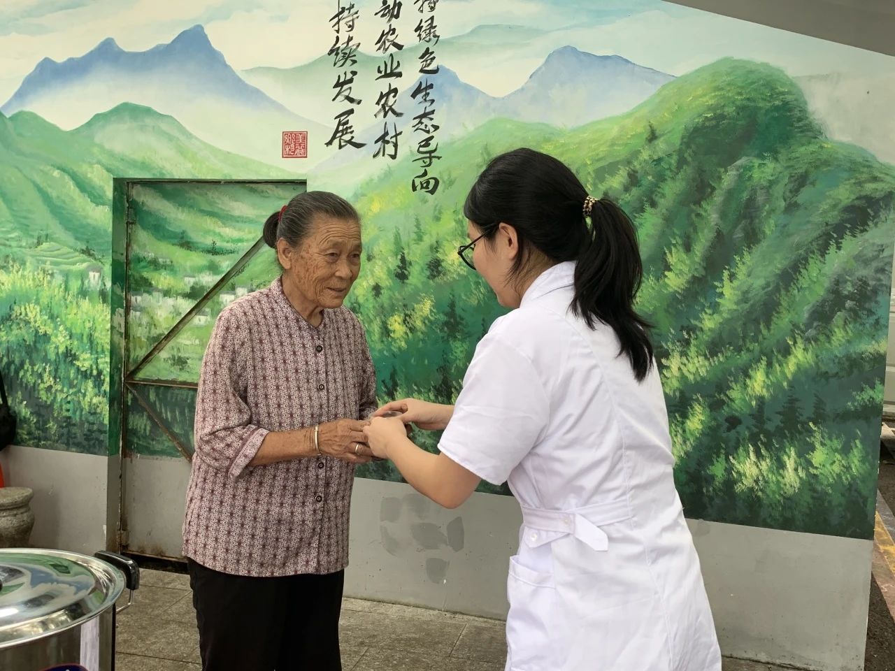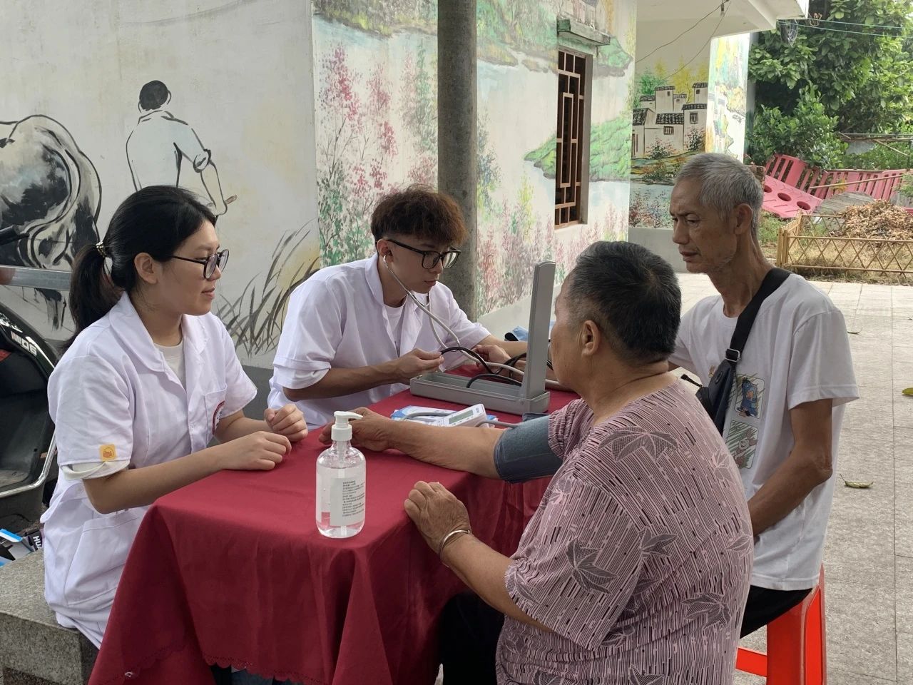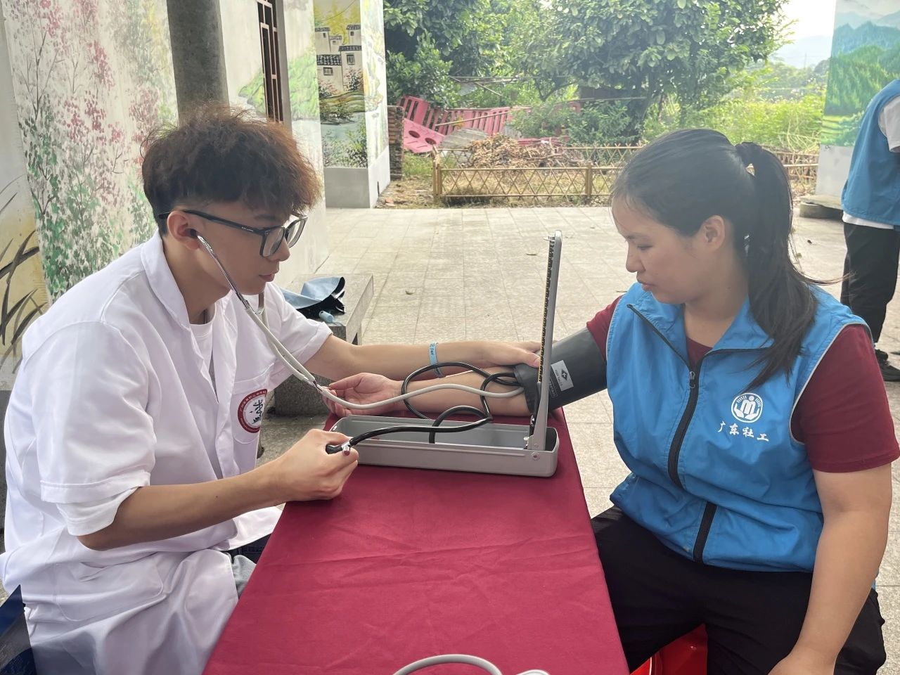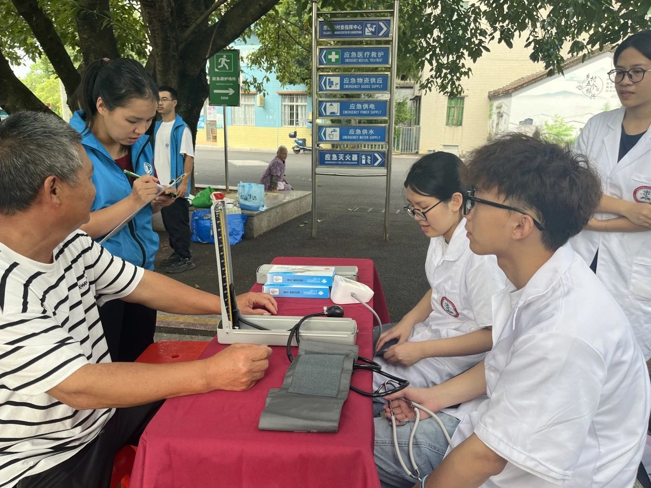 活动现场,青年志愿者们充分发挥专业特长,为村民们量血压,耐心解答他们的健康问题,并给出合理的保健建议,帮助老人们深化对高血压的认识,学会有效预防并发症。