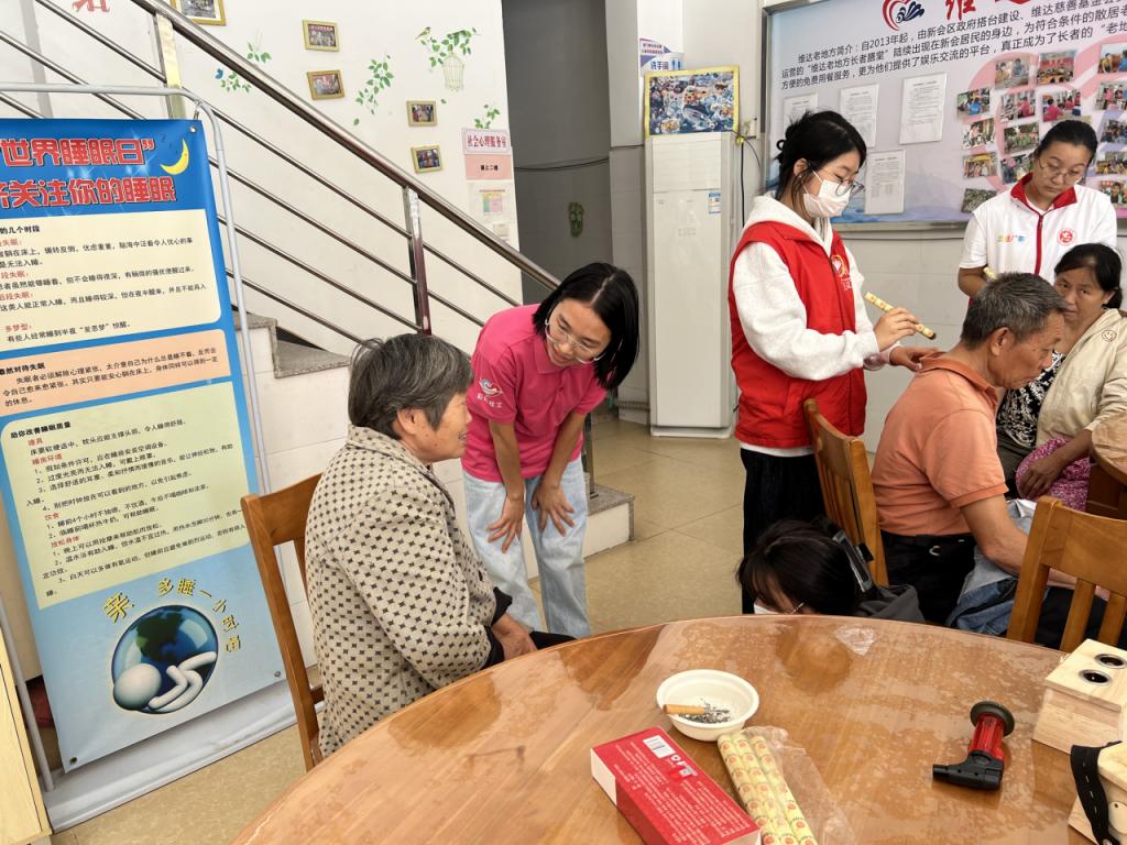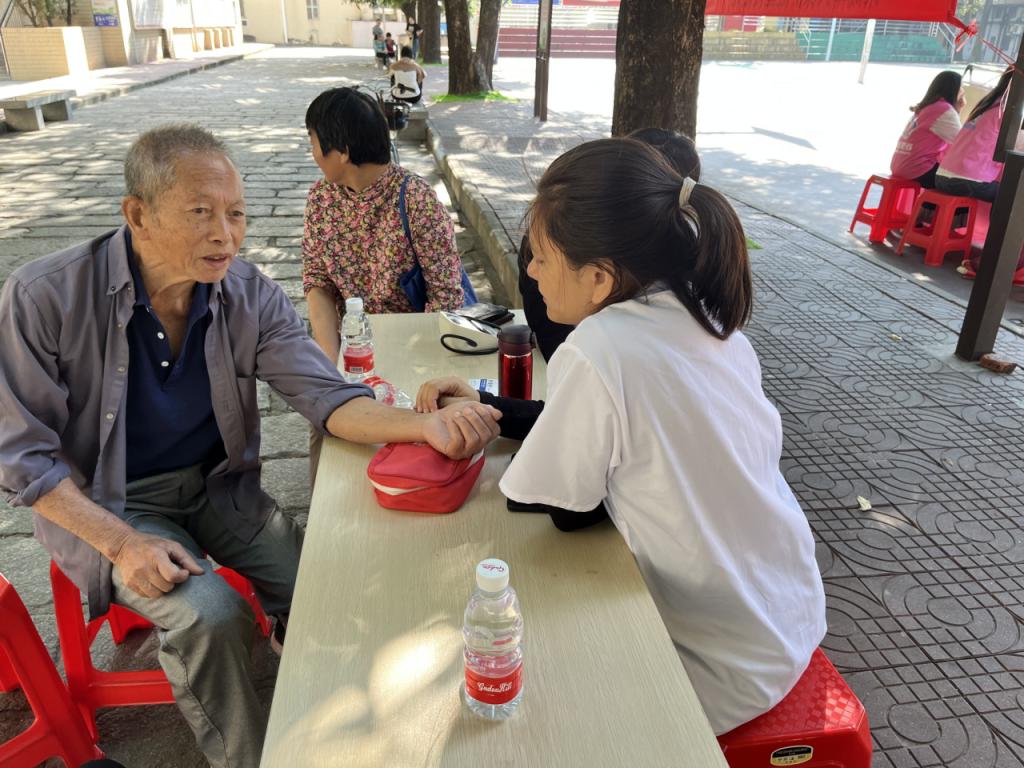 在活动现场,健康医学院的师生志愿者们热情耐心地与长者们沟通,为他们提供基础疾病咨询服务。他们利用所学的专业知识和技术为长者们测量血压和进行身体功能测试,及时发现潜在的健康问题,并提供个性化的健康建议。志愿者们同时详细了解老人们的健康状况,与自身所学知识相结合,用通俗易懂的语言宣讲健康知识,内容包括如何预防高血压、糖尿病等常见疾病,如何合理膳食、科学锻炼等,这些实用的养生保健的小知识提升了老人们的自我保健意识。
