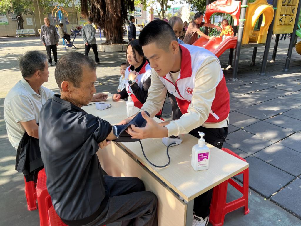 为助力“百千万工程”,推动校地融合发展,增强大学生的社会责任感和使命感,将志愿服务融入基层社会服务,弘扬中华民族“尊老、敬老、爱老、助老”的传统美德。11月8日上午,广州华商职业学院健康医学院(江门校区)师生志愿者们与崖门镇社会工作服务站社工志愿者们,在崖门镇文化中心广场开展“关爱长者,守护健康”志愿服务活动。