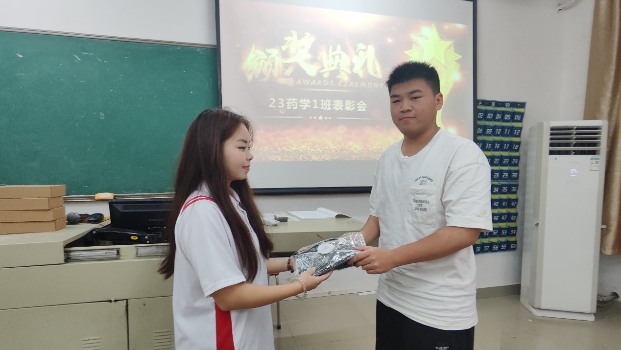 由班长陈海彤和学委乐琳琳为获奖同学颁奖。