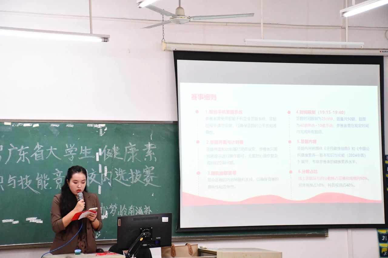 11月13日晚,广州华商职业学院健康医学院于博B403、B404(广州校区)教②507、教②508(江门校区)举办第二届广东省大学生健康素养竞赛校内选拔赛初赛,旨在促进健康知识交流,提升大学生健康素养,推动健康理念传播,营造积极健康氛围,得到师生积极响应。