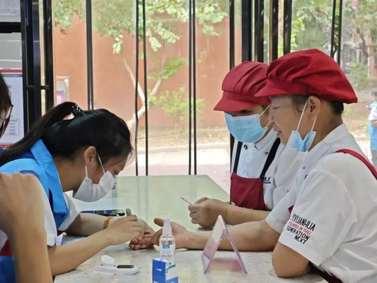 在活动现场,志愿者们凭借严谨、专业的态度,为前来咨询的群众提供了细致入微的血糖、血压检查服务,耐心地为他们答疑解惑,并提供了健康指导和建议。