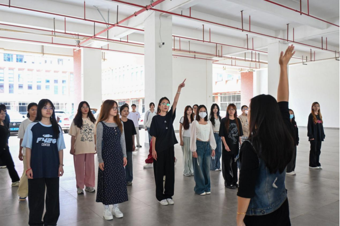 在为期两周的排练时间里,同学们精神抖擞,紧随赵老师的指导进行着紧张的排练。赵老师耐心纠正每一个动作,从步伐的稳健到队形的流畅变换,她对每一个细节都追求完美。她激励同学们要满怀信心,展现出充满活力的学子形象,为校运会开幕式贡献一抹鲜艳的色彩。同学们积极响应,认真投入,争取每一次排练都比上一次更加出色。