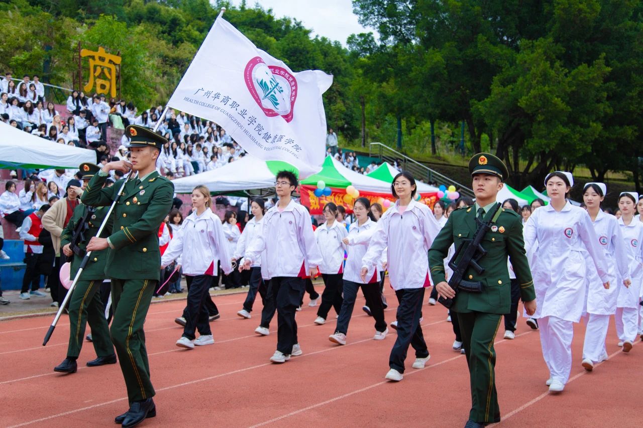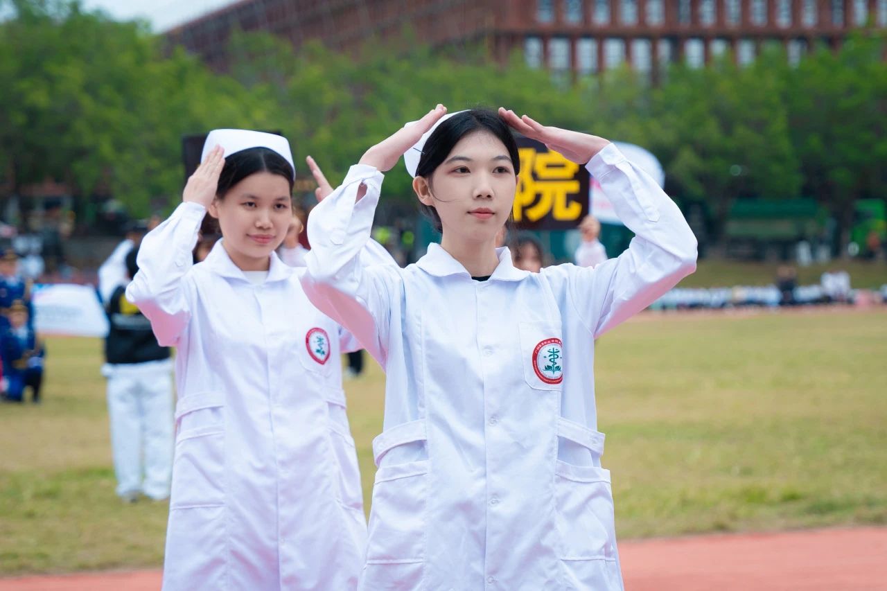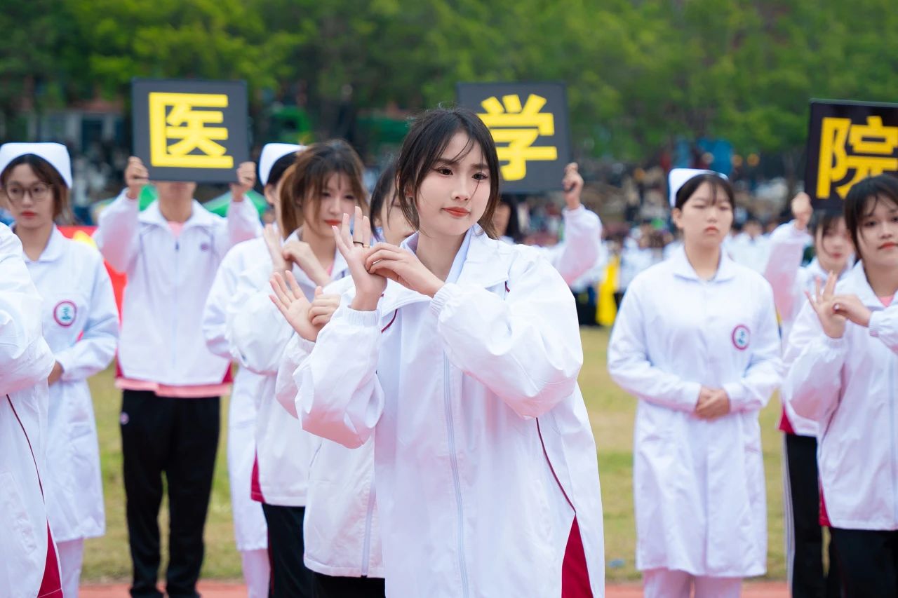 整齐划一的步伐、强健有力的体魄及昂扬的精神面貌,健康医学院方阵生动诠释了追求卓越与必胜的决心。表演中,护理礼仪与七步洗手法的巧妙融合,不仅展现了师生风貌与专业素养,更深刻传达了无私奉献、关爱健康的崇高情怀。