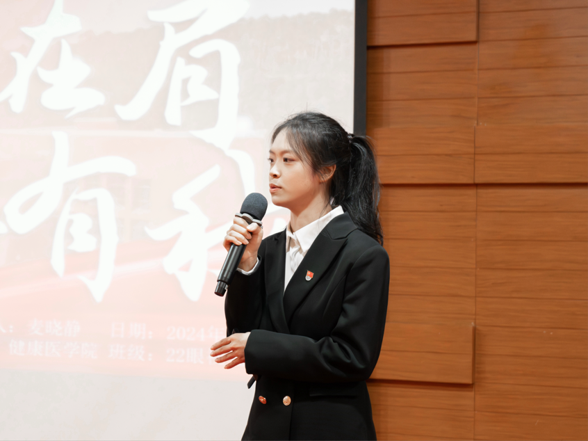 初心如磐,奋楫扬帆。自入学以来麦晓静积极向党组织靠拢,珍惜党校培训机会,深入学习党的理论知识,不断提升政治素养,于2023年12月成为一名中共预备党员。同时也积极参加党建宣讲,坚持向同学们宣传百年党史,以青春之声回应时代呼唤。