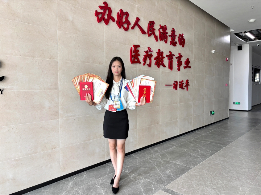 力学笃行,坚持不懈。连续两年绩点在专业排名第三,第二学年综测排名第一,她还利用在课堂上学习到的专业知识组织开展了三次眼视光义诊活动,为我校部分师生进行视力检查,真正做到学以致用。并努力考取了如社会心理中级等技能证书,将理论知识与实践技能相结合。