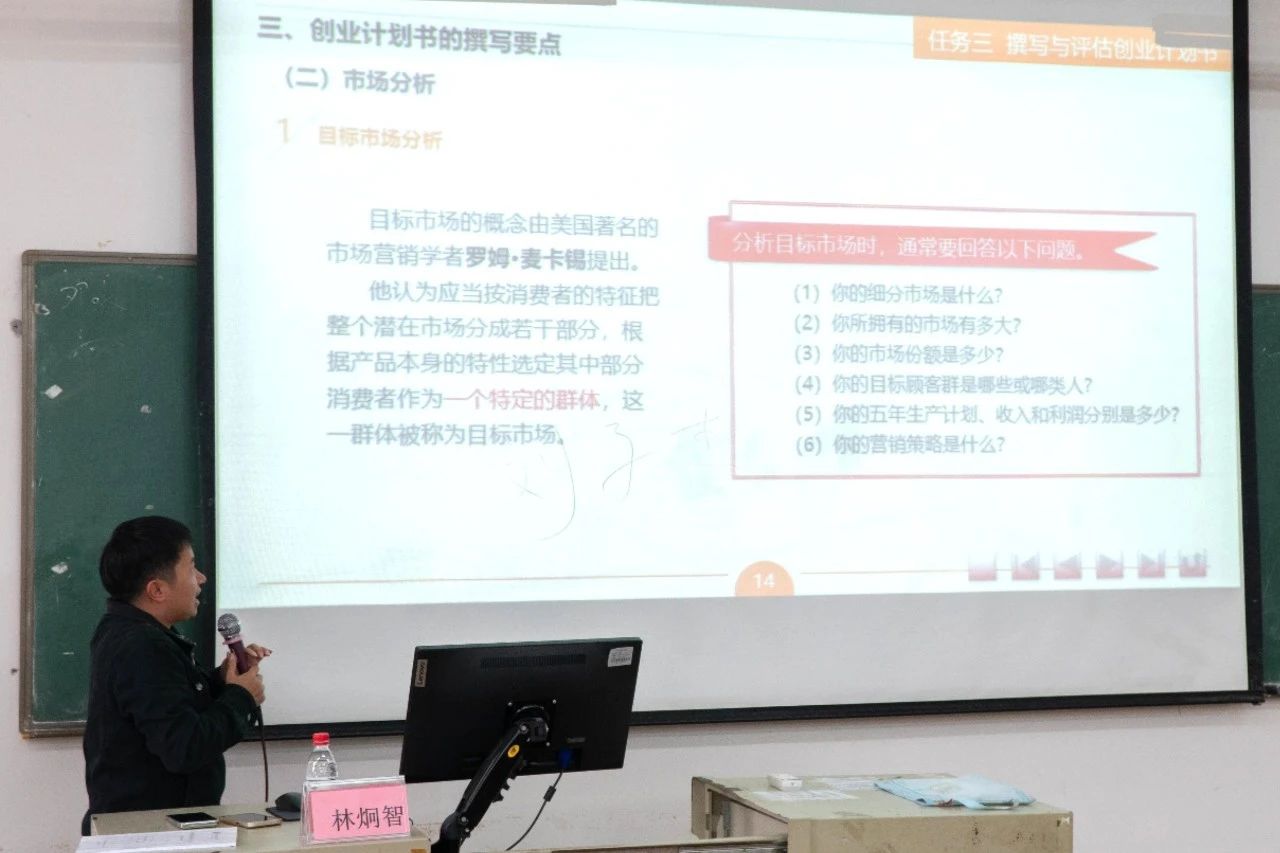 随后,林炯智老师以其丰富的经验和深刻的见解,为同学们点明了创业计划书至关重要的九大关键撰写要点。首先是企业介绍,需清晰勾勒出企业的轮廓、使命与愿景,让投资者一眼洞悉企业的灵魂。市场分析则要求对行业动态、目标市场的规模与趋势进行深入挖掘,探寻潜在机遇。产品或服务介绍应着重突出独特卖点与竞争优势。人员及组织结构关乎团队的搭建与分工协作。市场预测要有理有据,展现前瞻性眼光。营销策略需多元且具针对性。生产计划确保运营有条不紊。财务规划明确资金流向。风险分析则提前预警,为创业之路保驾护航。