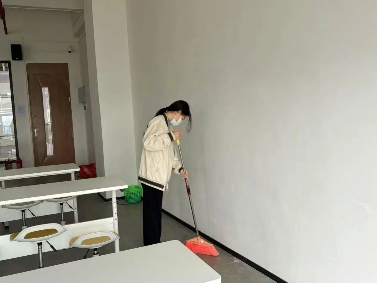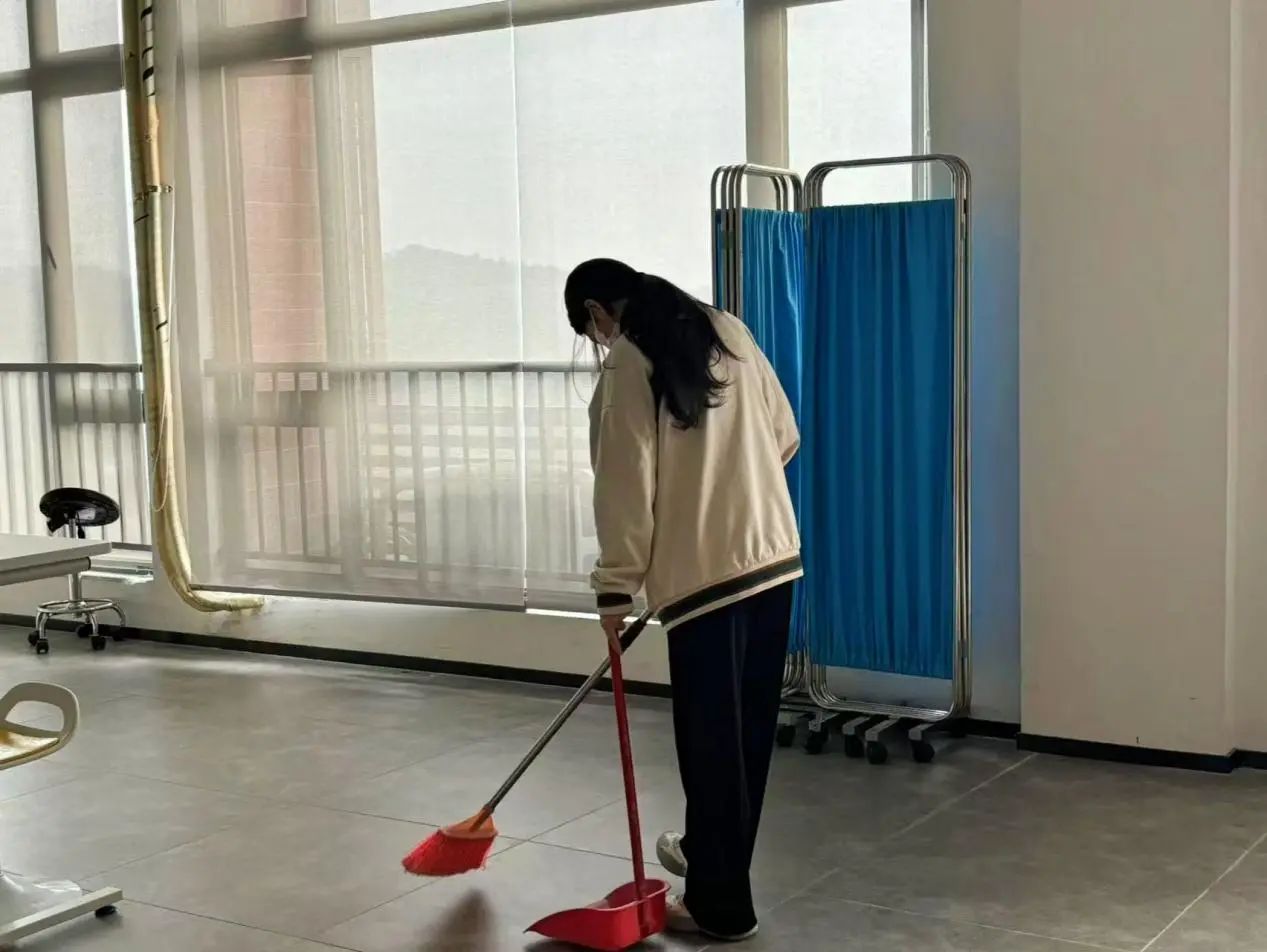 在队长的精心策划与带领下,队员们身着统一的志愿服务服装,手持扫帚、抹布、拖把等工具,迅速投入紧张而有序的工作中。实训室,这个承载着无数知识与梦想的地方,在队员们的共同努力下,逐渐焕发出新的生机与活力。从擦拭每一寸桌面,到整理每一份资料;从清扫每一个角落的尘埃,到归置每一件实验器材,每一个细节都凝聚着队员们对医学事业的热爱与尊重。