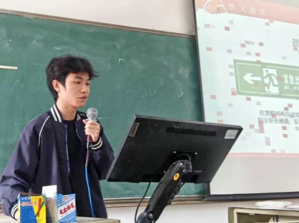 班会由班长邬添云主持,班长从交通安全、消防安全、食品安全、防疫安全、反诈防骗和节水宣传等多个方面强调了安全问题和水资源保护问题。
