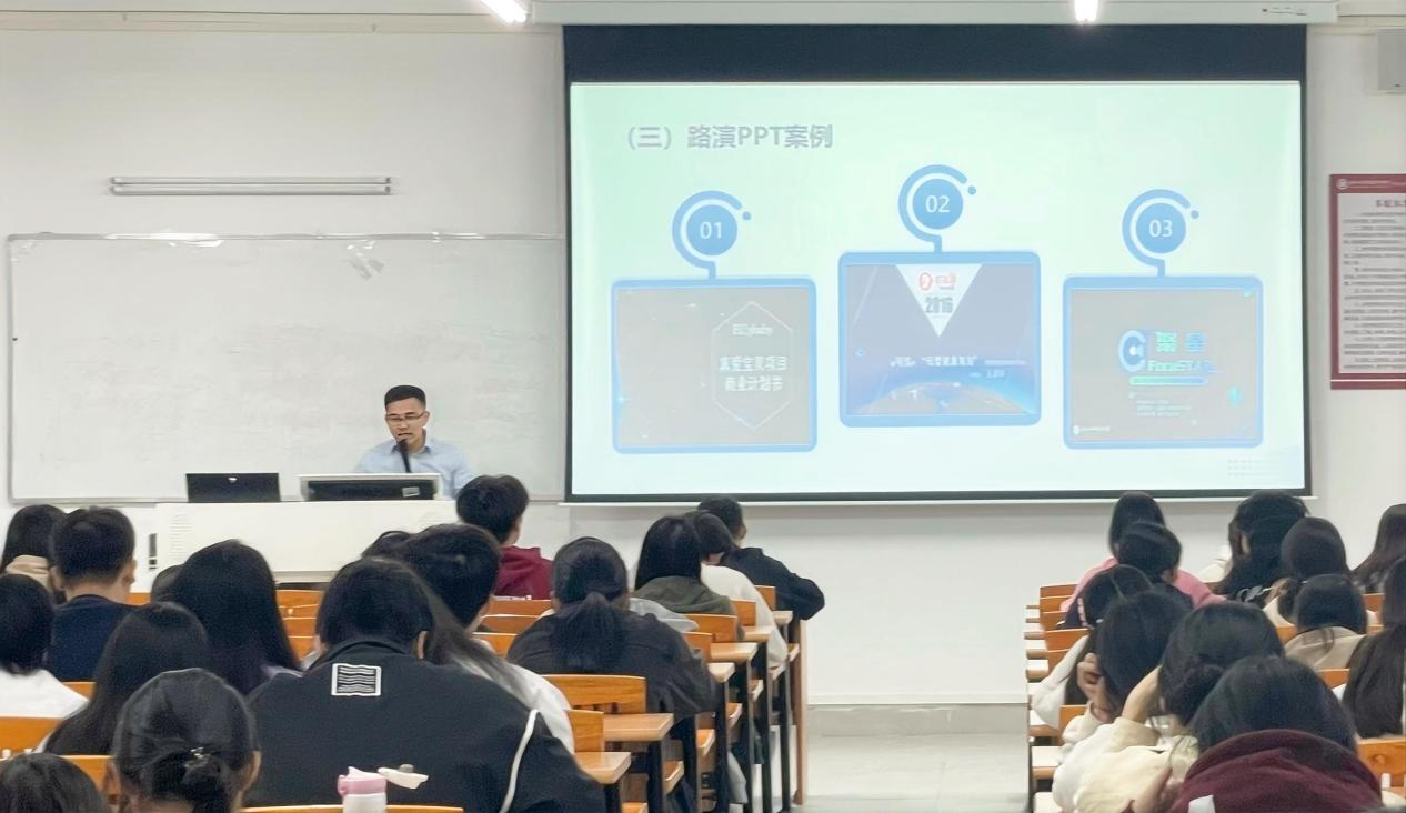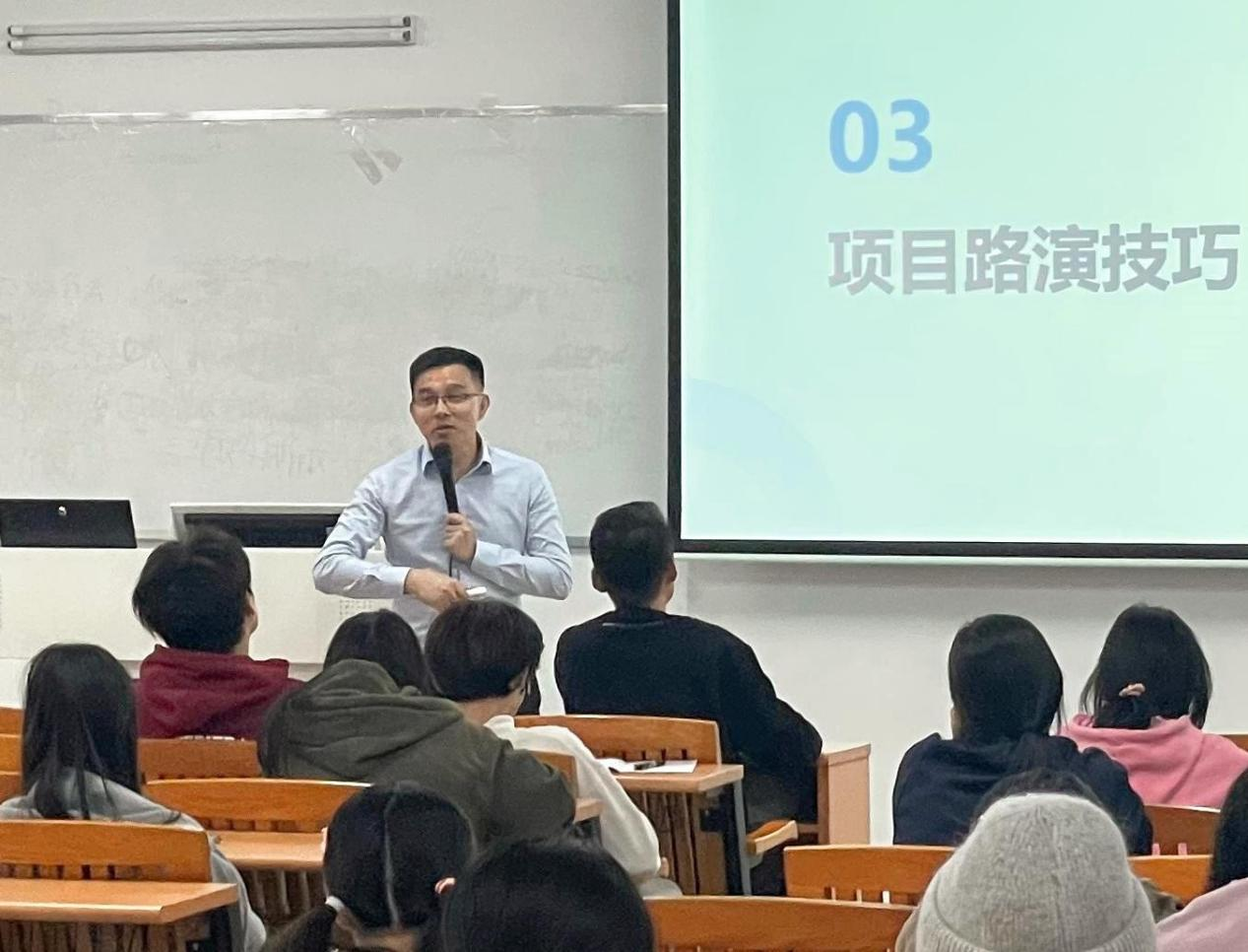 此外,黄泽栋副院长还分享了项目路演的技巧,包括路演前的准备、路演中的表达技巧,以及如何通过有效的内容传达和互动参与来吸引听众。他建议,了解听众和环境、准备演讲材料、排练和调整是路演前的必要准备,而清晰的开场、有效的内容传达和互动参与则是路演中的关键。在讲座过程中,他还通过分享多个实际案例,让大家更直观地感受成功的商业计划书和精彩路演背后的技巧。