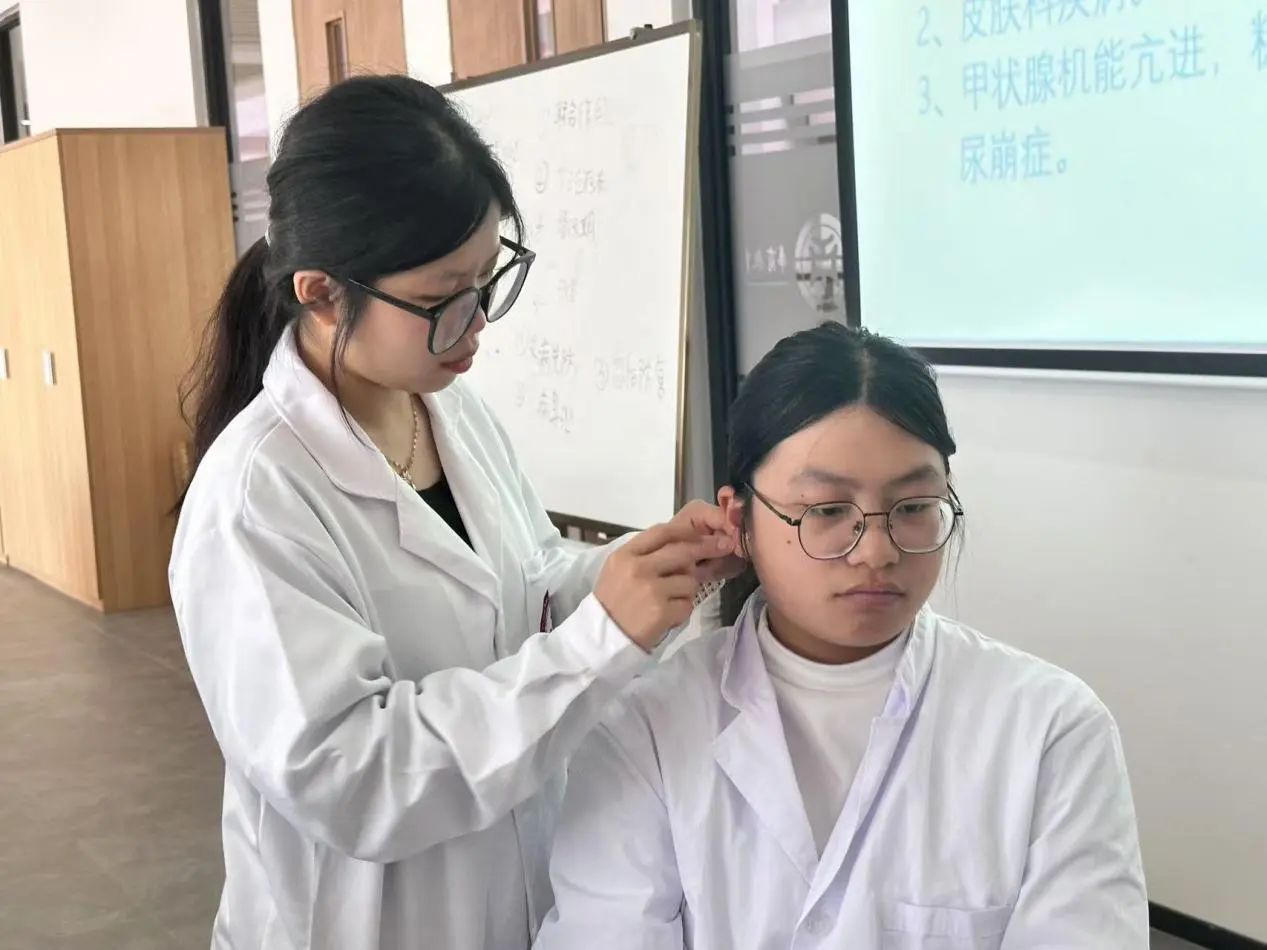 在本次培训课中,队长罗雅欣带大家深入了解耳穴与身体各部位、脏腑的对应关系,熟悉那些关键耳穴的精准定位与主治功效。比如,刺激神门穴可宁心安神助眠,按压内分泌穴能调节内分泌紊乱。