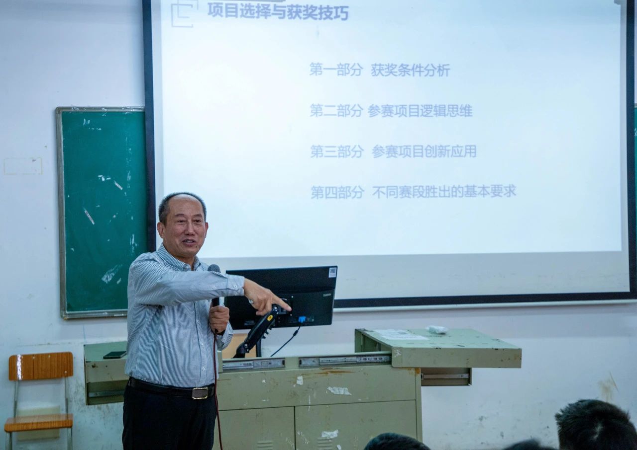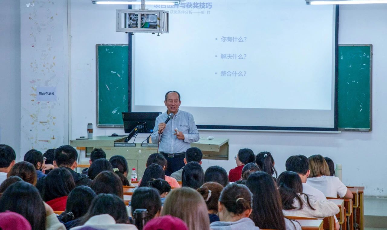 讲座期间,丁浤伟教授着重阐释项目选择与获奖技巧,其内容划分为四个核心部分:深入剖析获奖条件,即细致研究赛事评审标准中关于获奖项目的各项规定与潜在要求,以期精准把握;详细解读参赛项目逻辑思维,亦即阐释构建科学合理、条理清晰且富有说服力的项目逻辑体系的方法论;深度探讨参赛项目创新应用,旨在说明如何将创新元素有效整合并切实应用于项目实践之中,从而彰显独特优势与价值;明确阐述不同赛段胜出的基本要求,为参赛选手于赛事各阶段的有序推进与顺利晋级提供明确的方向指引与行动纲领。