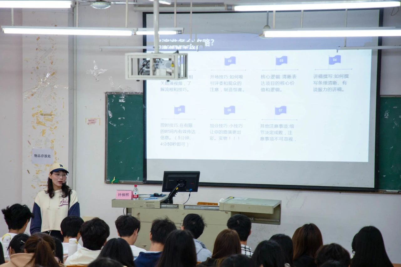 讲座伊始,钟柳熙老师首先提出了路演的开场技巧以及演讲稿撰写方法,并给出实例进行分析,提醒大家要注重时间控制与流畅表达。其中,时间管理技巧在于在限定的时间内精准传递核心信息;亮点技巧则是通过一些小策略让路演脱颖而出,比如实物展示。