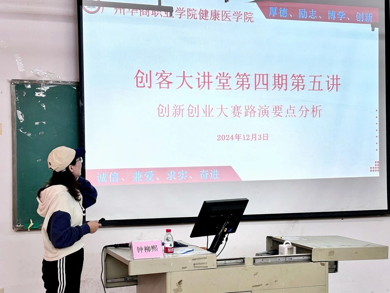 为进一步深化学生的创新创业理念,激发学生的创新思维并提升其实际操作能力,健康医学院于12月3日在博学楼C201举办主题为“创新创业大赛路演要点分析”的讲座。本次讲座特别邀请创新创业导师钟柳熙担任主讲嘉宾。