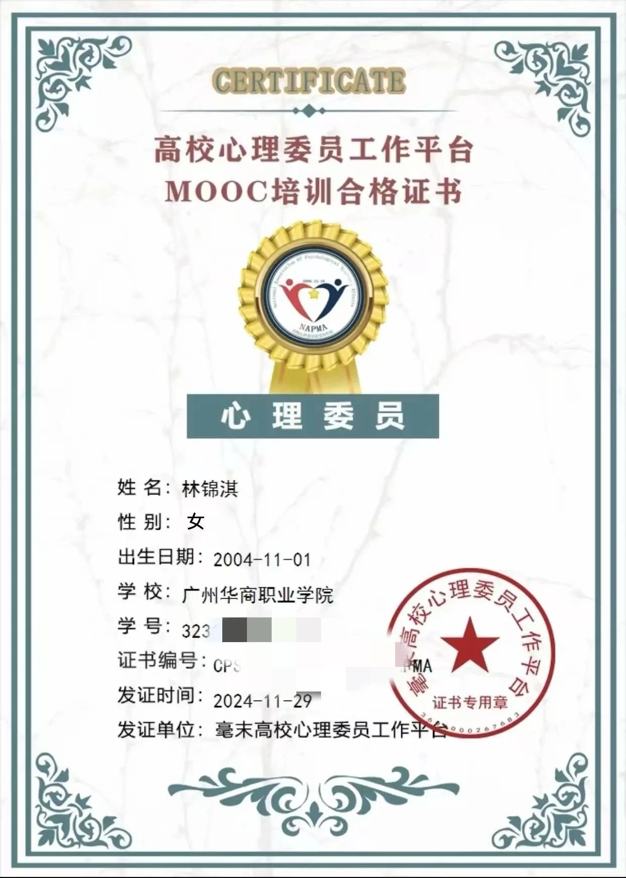 优秀心理委员