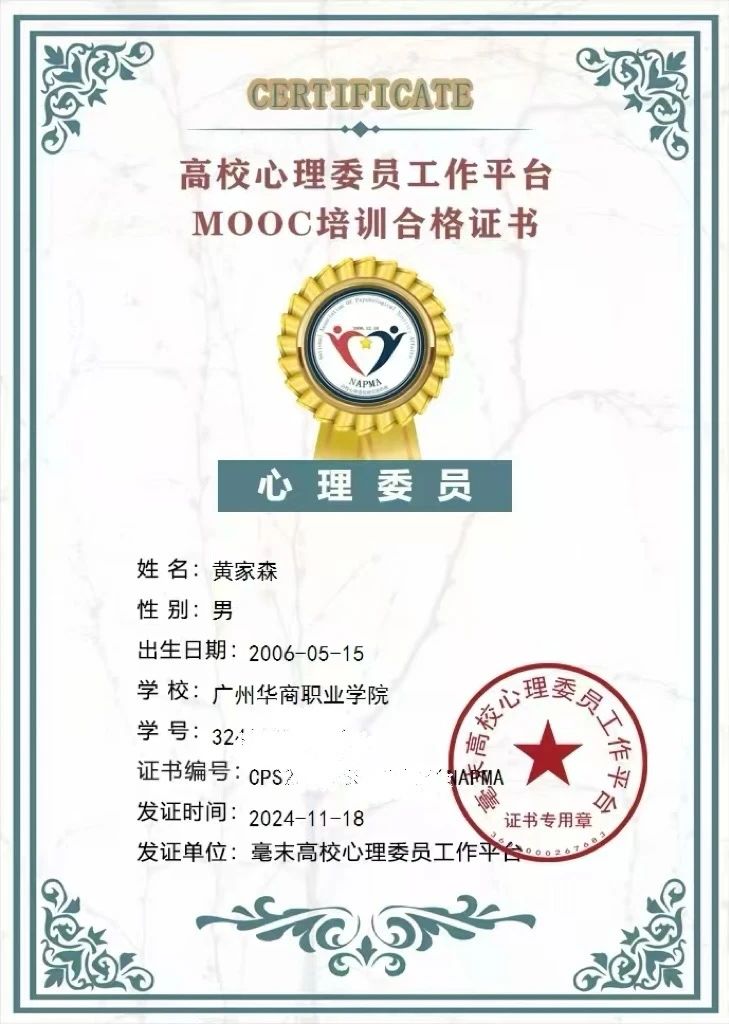 为提升心理委员和宿舍心理信息员的专业技能,加强校园心理健康教育工作,2024年度心理委员和宿舍心理信息员系列培训圆满落幕。本次培训旨在培养一批具备心理素质管理与互助能力的学生队伍,作为连接学校与同学之间的桥梁,推动校内心理健康教育的深入发展。