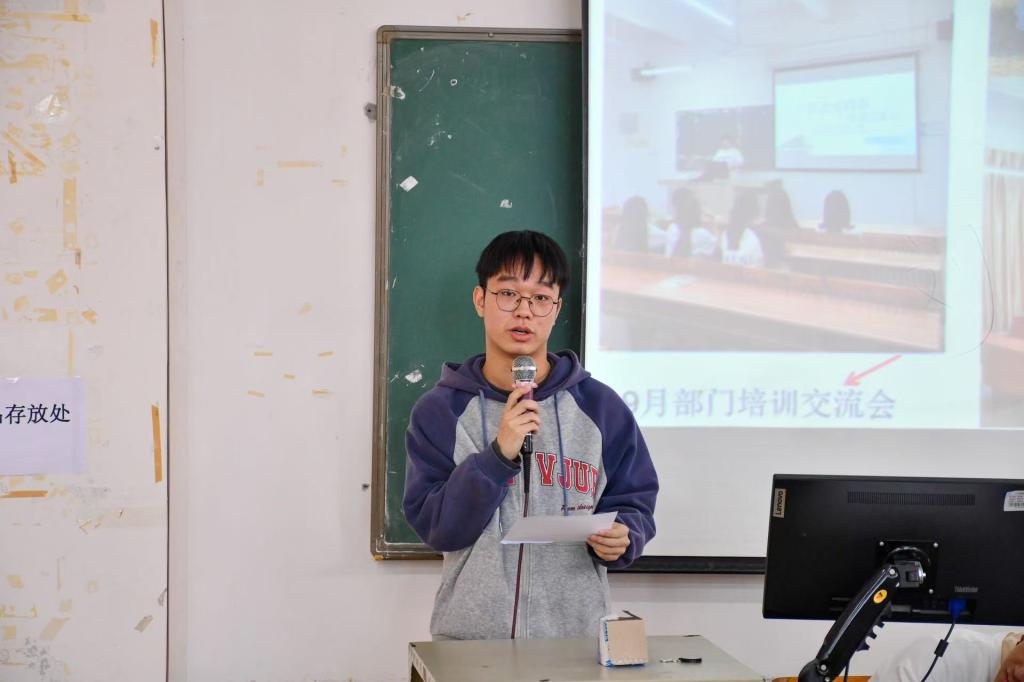 会议现场,各部门代表依次上台发言,详细汇报了本学期各部门工作的具体情况、取得的成效以及经验教训。