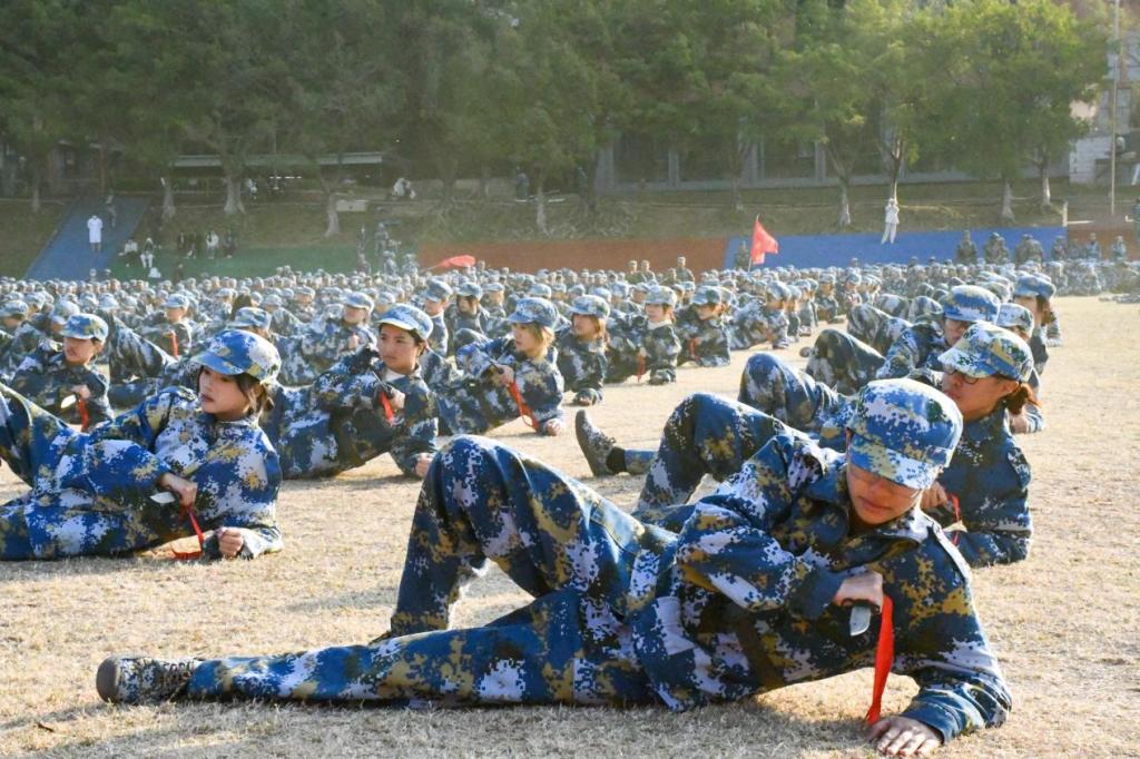 军训期间,身着迷彩服的新生们在训练场上英姿飒爽。无论是烈日下的站军姿、还是队列训练,他们都以饱满的热情和坚强的意志投入其中。口号声声,悠扬嘹亮,展现了青春的力量与风采。