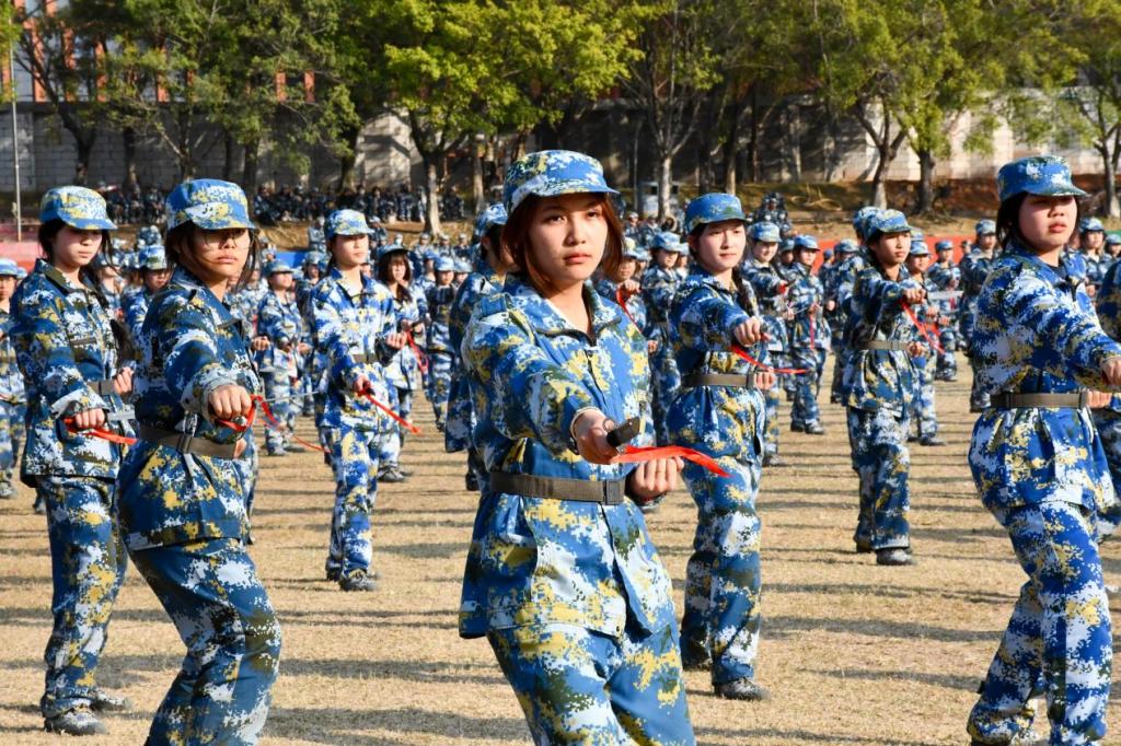 他们紧握匕首,每一个动作都精准到位,力度恰到好处,整齐划一的节奏宛如一首激昂的军旅乐章,在操场上空回荡。阳光下,他们的身影挺拔如松,动作流畅而有力,不仅熟练掌握了匕首的使用与防御技巧,更将军人的飒爽英姿与非凡风采展现得淋漓尽致。