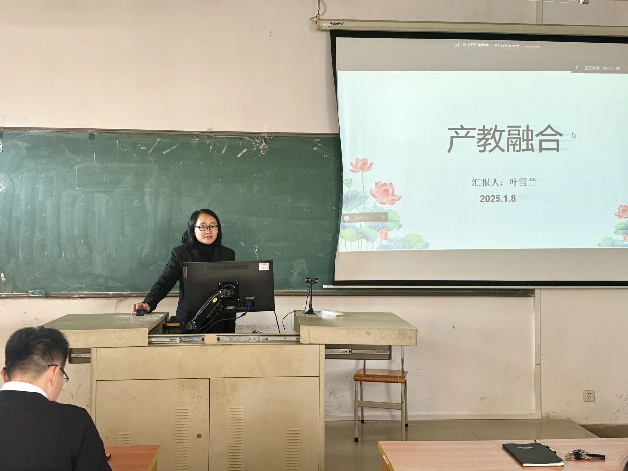 叶雪兰副院长就产教融合方面的工作进行了汇报,介绍了本学期校企合作的成果,并对下一学期的产教融合工作任务进行了分解和指标设定,为学生实习实训提供了有力保障。