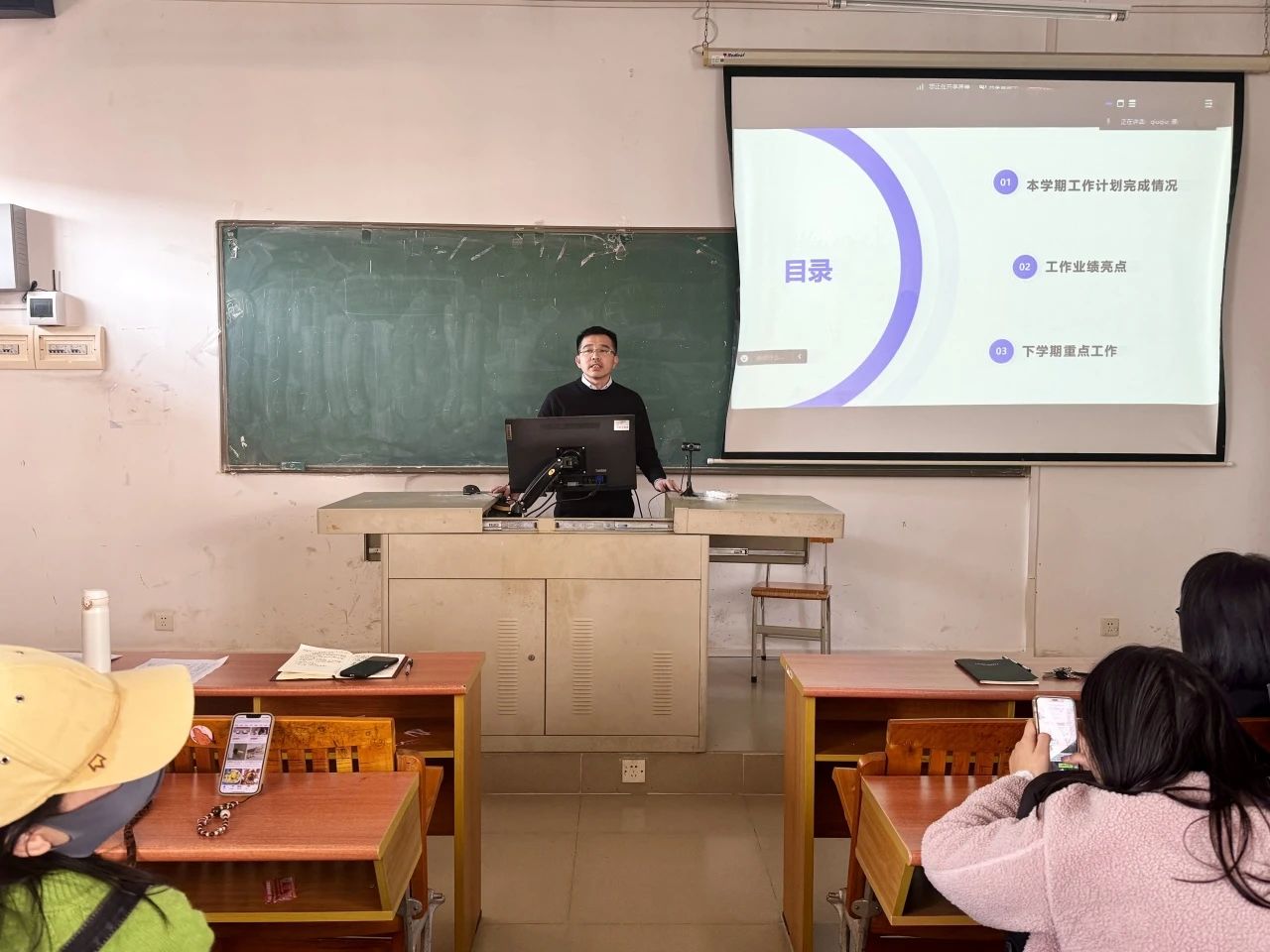学生工作副院长黄泽栋在会上分享了本学期学院党建思政情况、学生管理及社会服务等工作的完成情况及业绩亮点,并对下学期的重点工作进行了部署。他表示,学院将加速双校区融合发展,提高党建与学生工作品牌影响力,同时加大社会服务工作力度。