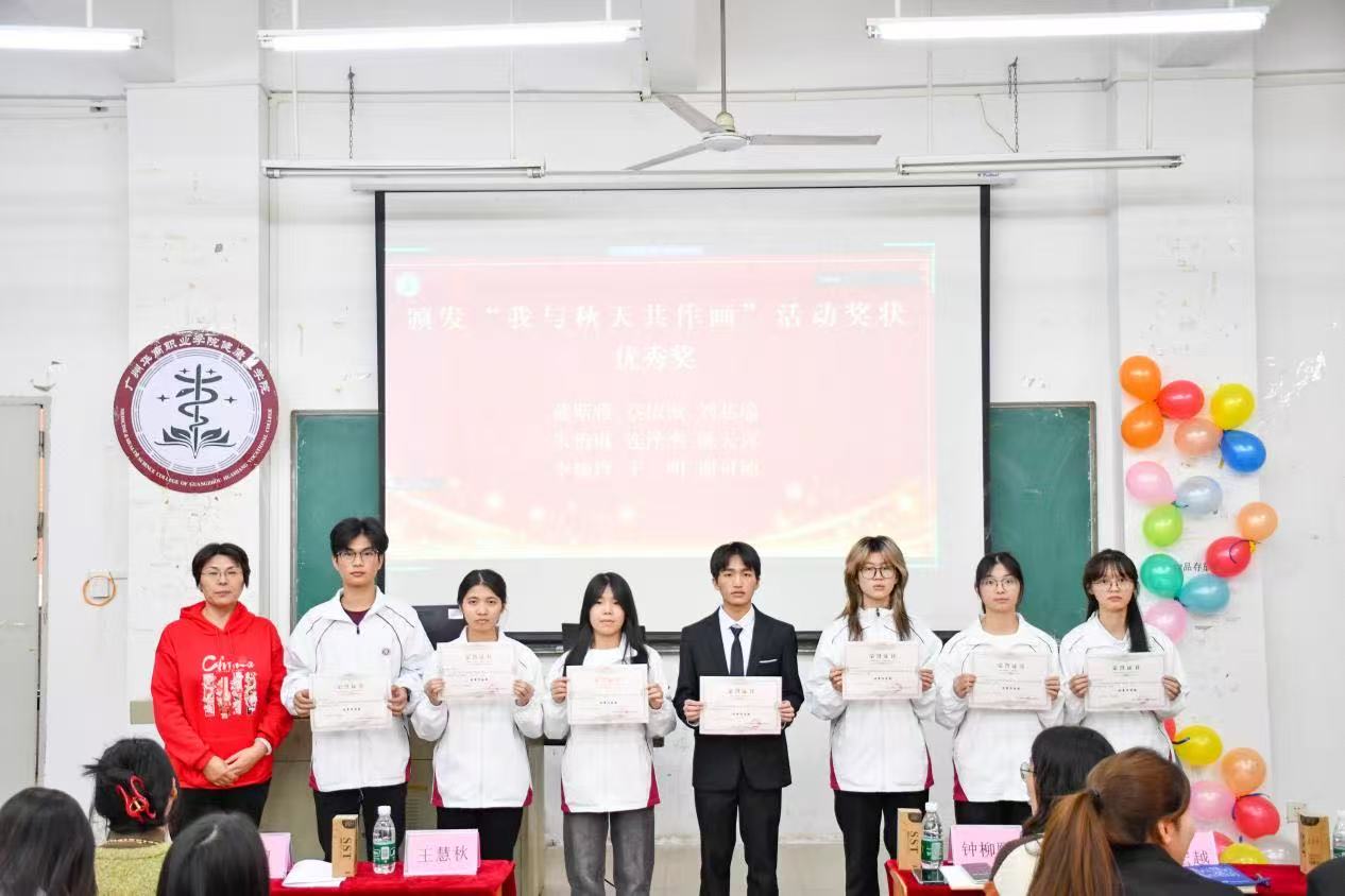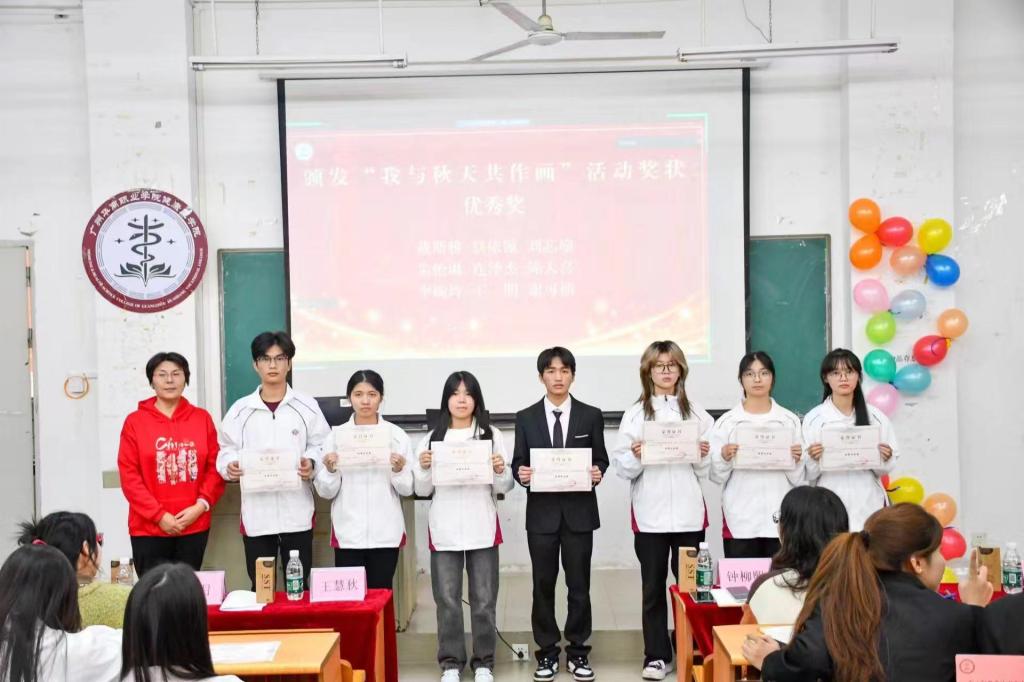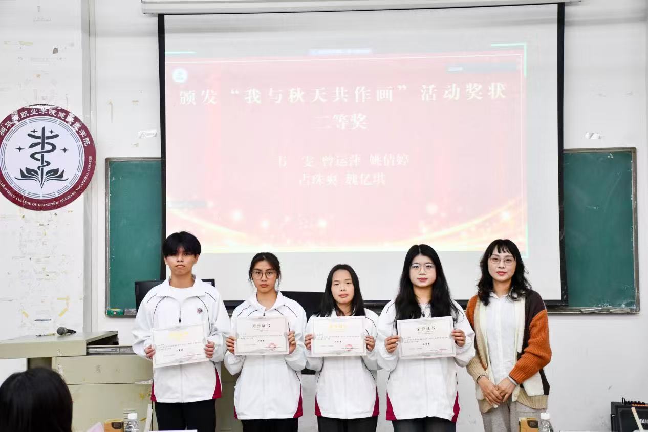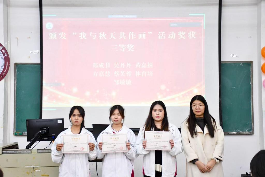 王慧秋教授为“我与秋天共作画”主题绘画活动一、二、三等奖及优秀奖获奖人员颁发奖状。