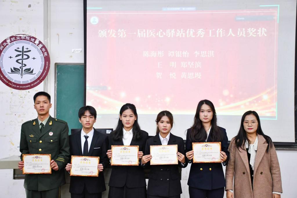 健康医学院学生第二党支部书记赵巧鸿老师为第一届医心驿站优秀工作人员颁发奖状。