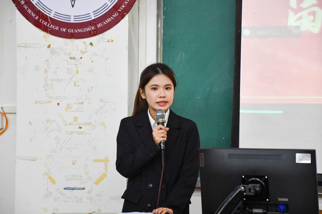 会议第五项议程:医心驿站副站长陈海彤作为学生负责人上台发言。鼓励同学们积极关注自身心理健康,学会自我调节,在遇到心理问题时勇敢寻求帮助,共同营造一个健康、和谐、积极向上的校园氛围。