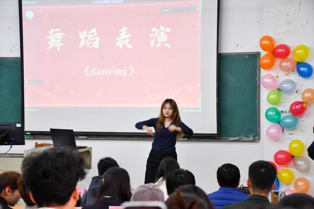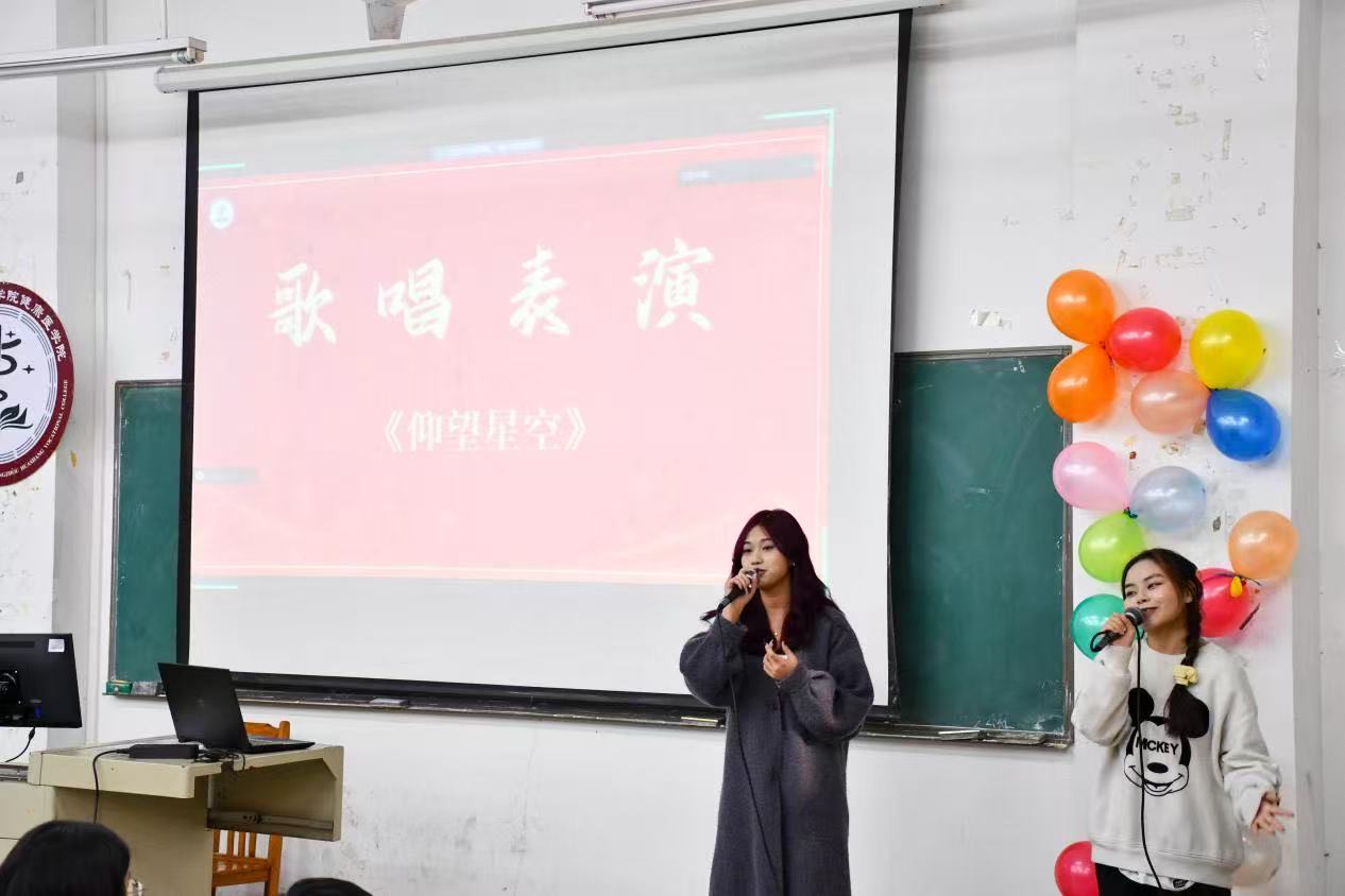 会议第一项议程:由校艺术团乐琳琳、庄羽菲同学带来歌曲《仰望星空》和马可可同学的《DANCING》舞蹈表演。