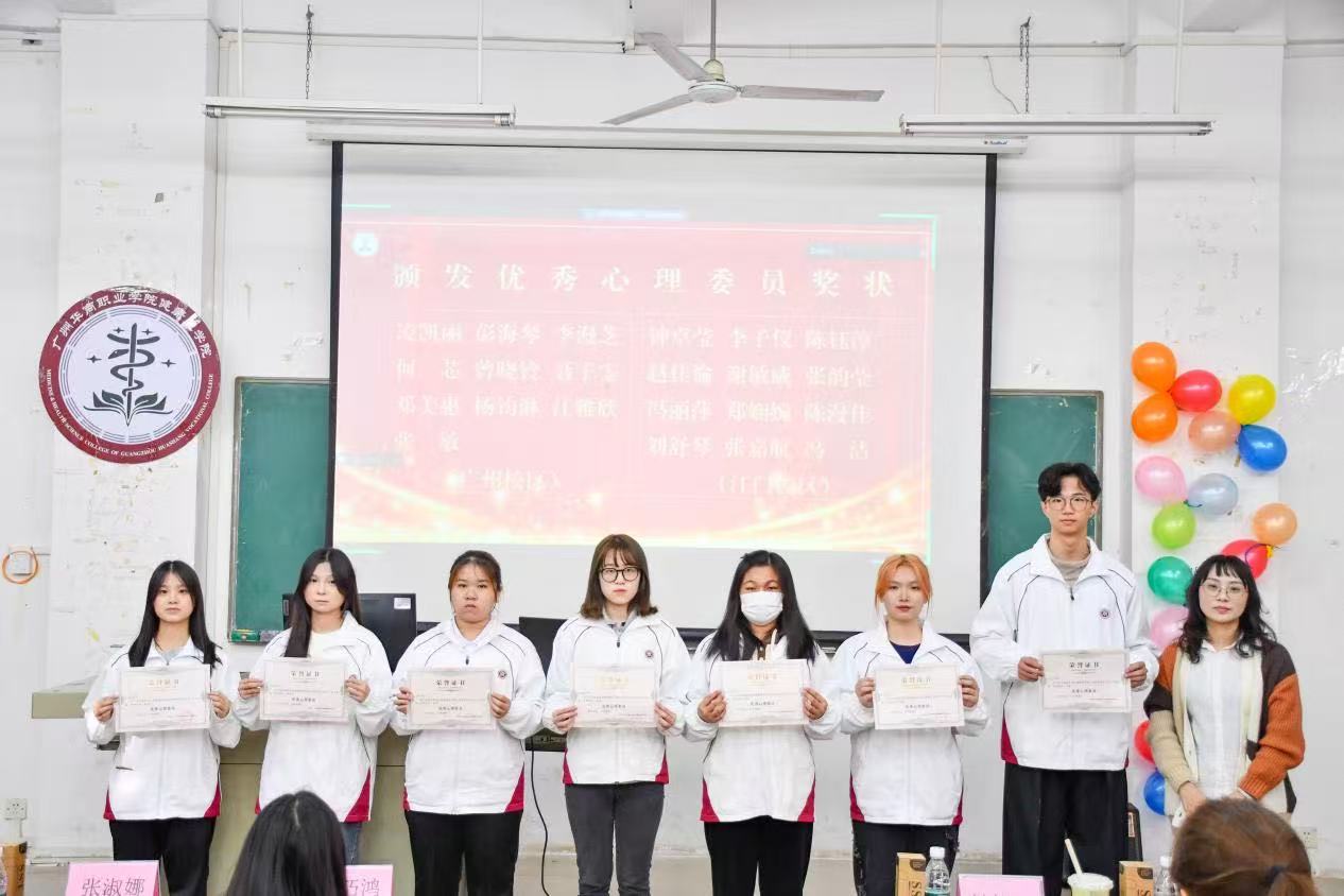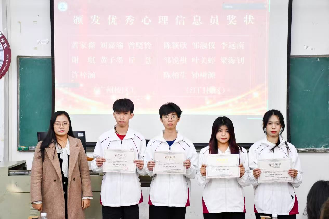 医心驿站指导老师钟柳熙老师为优秀心理委员颁发奖状。